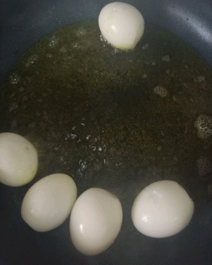 炸好的鸡蛋冷了过后再煮,虎皮更明显