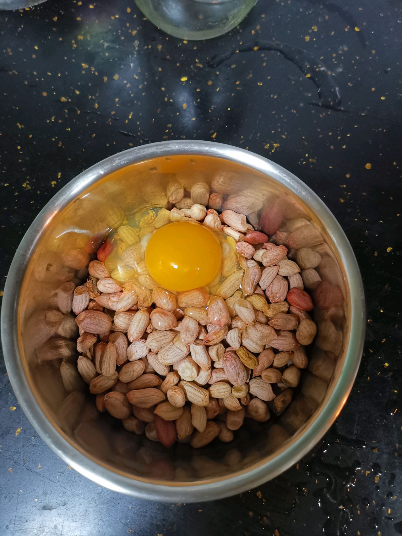 步骤2、搅拌均匀,让每个花生都裹上蛋液