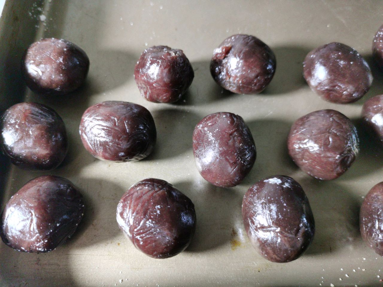 步骤1、将油酥和油皮材料各自混合成光滑的面团