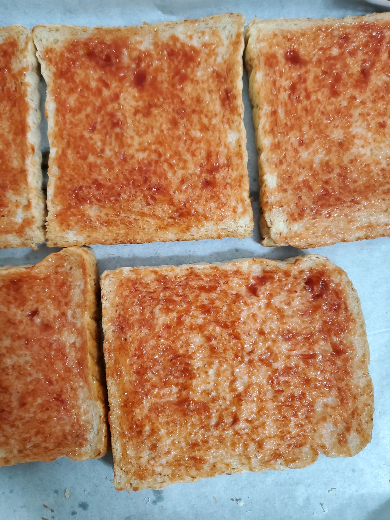 步骤1、吐司刷上番茄酱