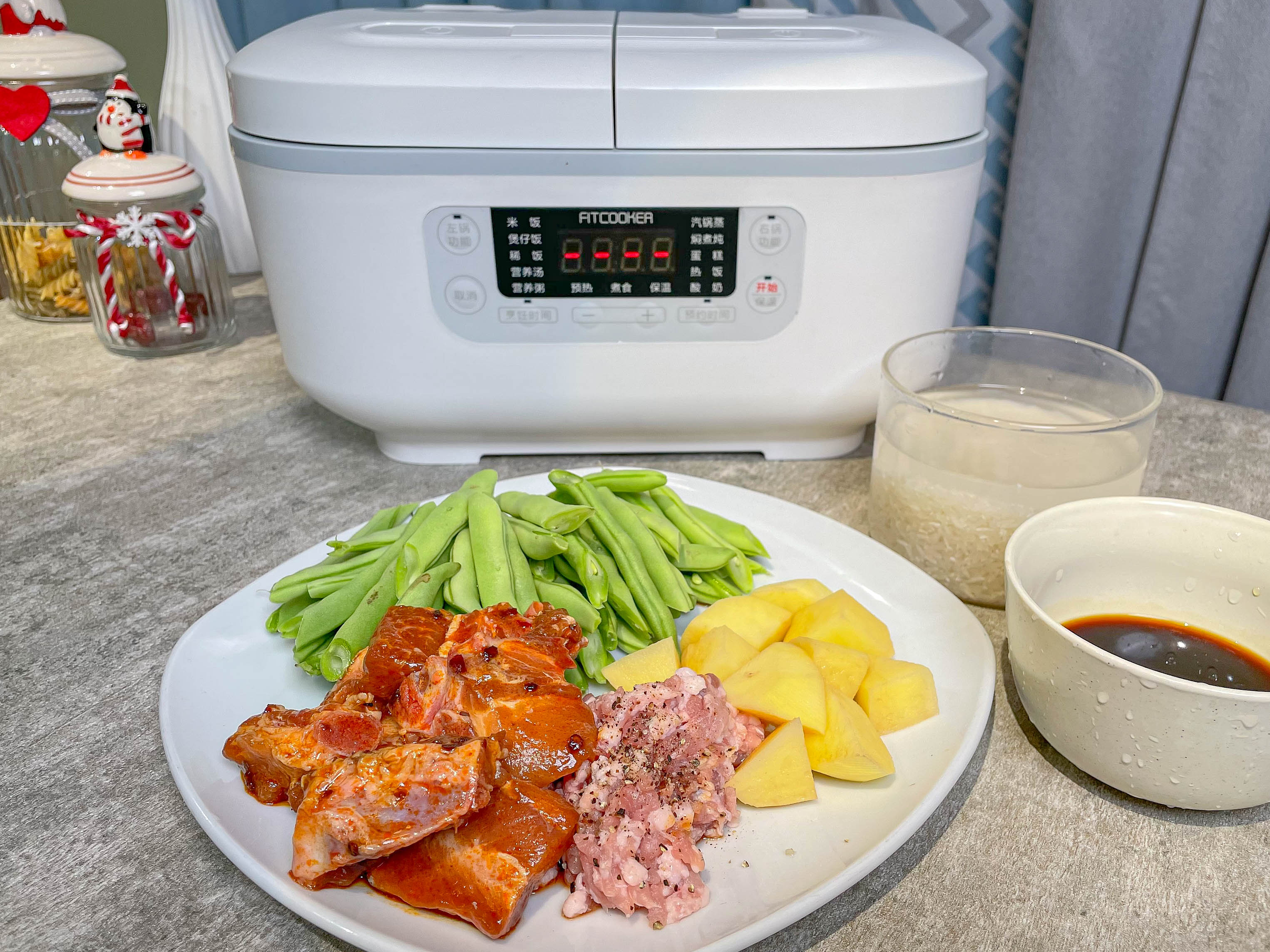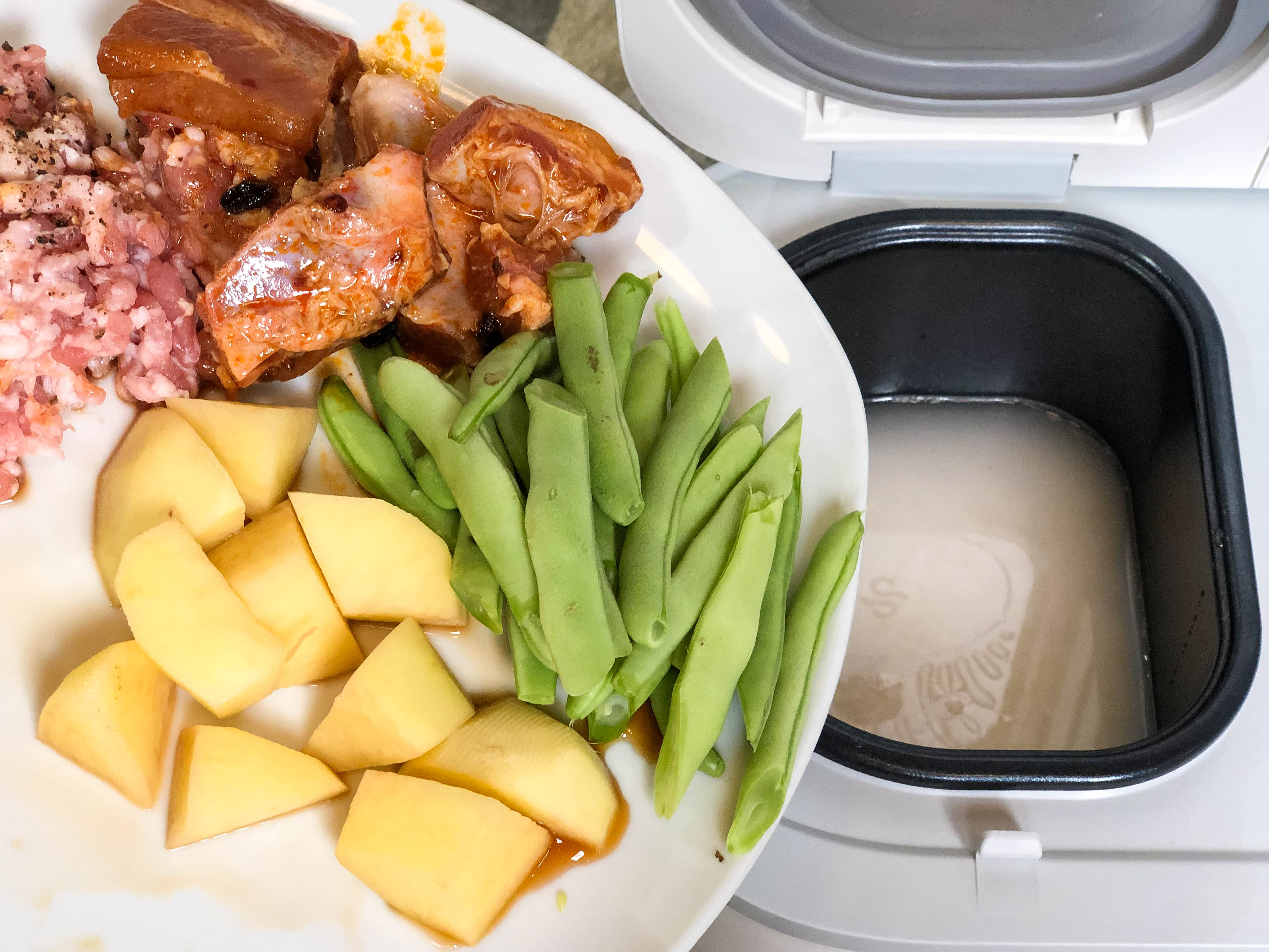 步骤5、家里两、三个人的时候还能用非煮不可自动料理锅简单做个营养汤、蒸排骨、茄子,简单又方便。