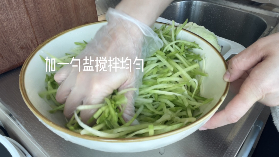 步骤3、加一勺盐搅拌均匀