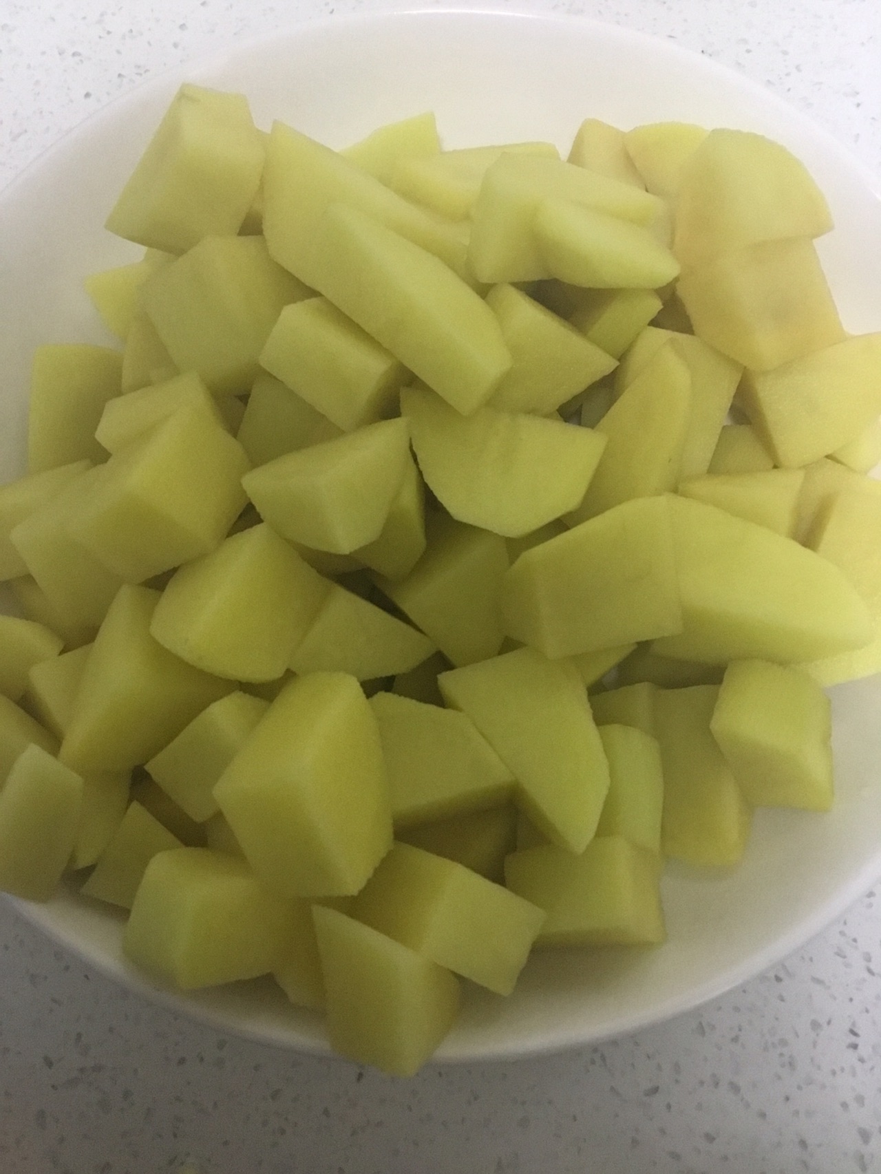步骤1、不要钱的鸡蛋大小的土豆6颗,切滚刀块备孕