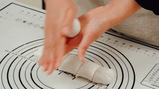步骤3、将面团搓成长条,再分成6等份(每份45g),然后搓圆再压扁*按扁后,糍粑的边缘不会出现锯齿状为好。