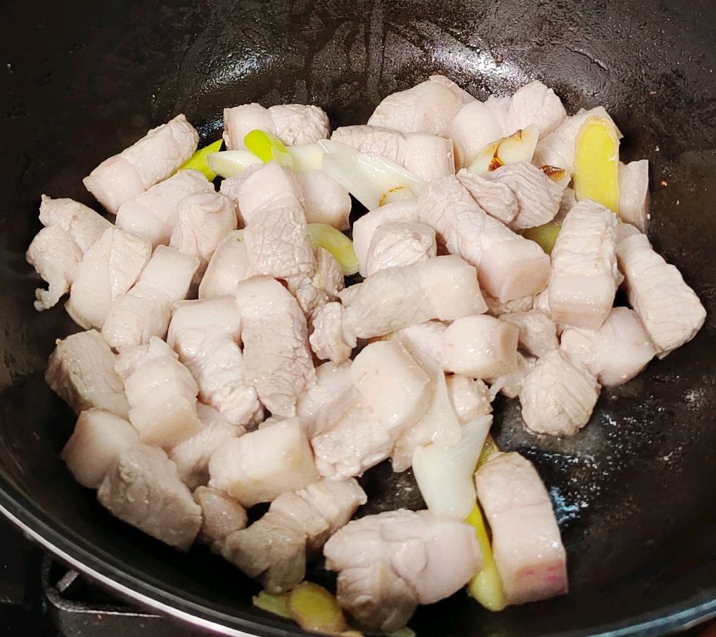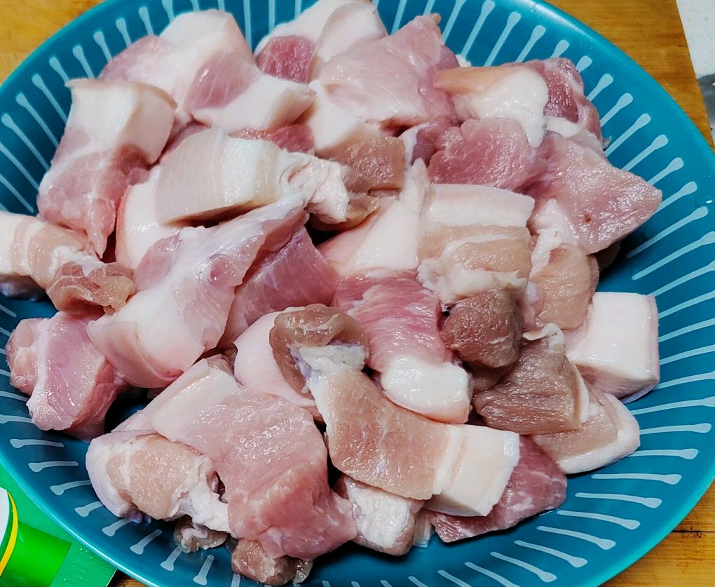 步骤1、五花肉切块,我直接泡水里一小时去血水,捞出沥水