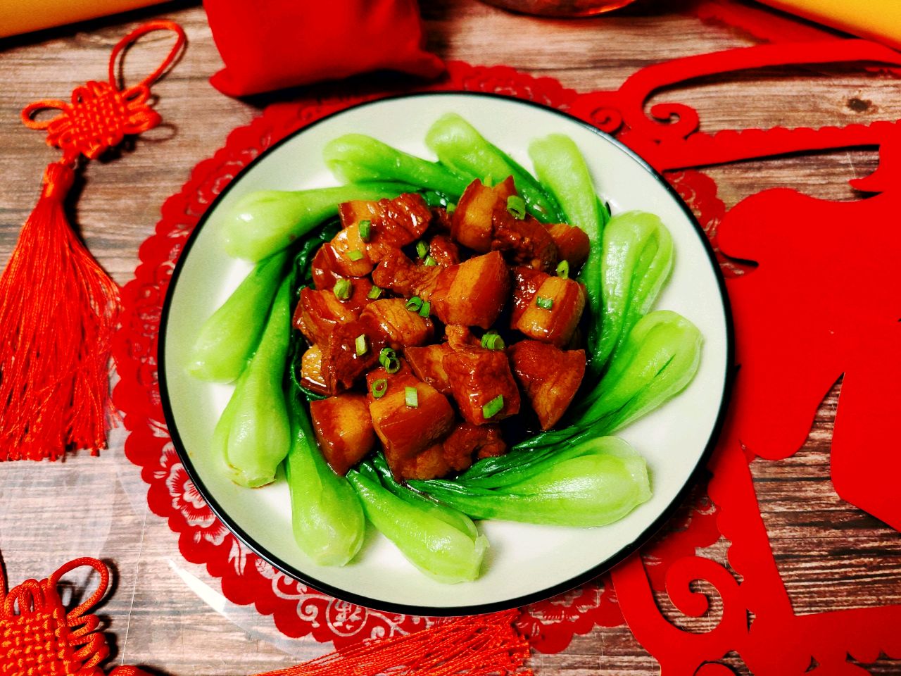 辅料:葱一段、八角两颗、料酒1勺、生抽2勺、老抽2勺、蚝油2勺、冰糖8块、热水适量