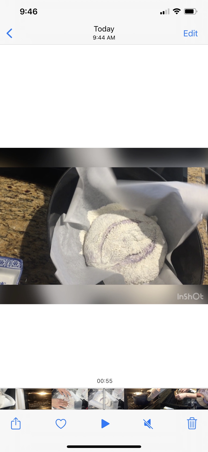步骤7、拿出面团盖上保鲜膜继续发酵半小时,同时预热烤箱250度,将铸铁锅放入烤箱预热