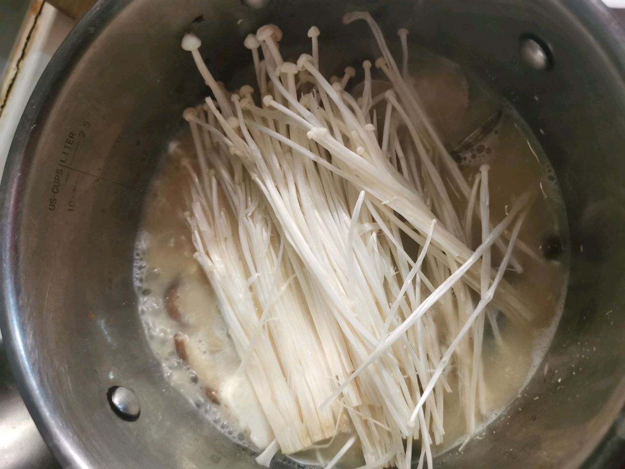 步骤7、加入蛤蜊和金针菇,等金针菇熟,关火。