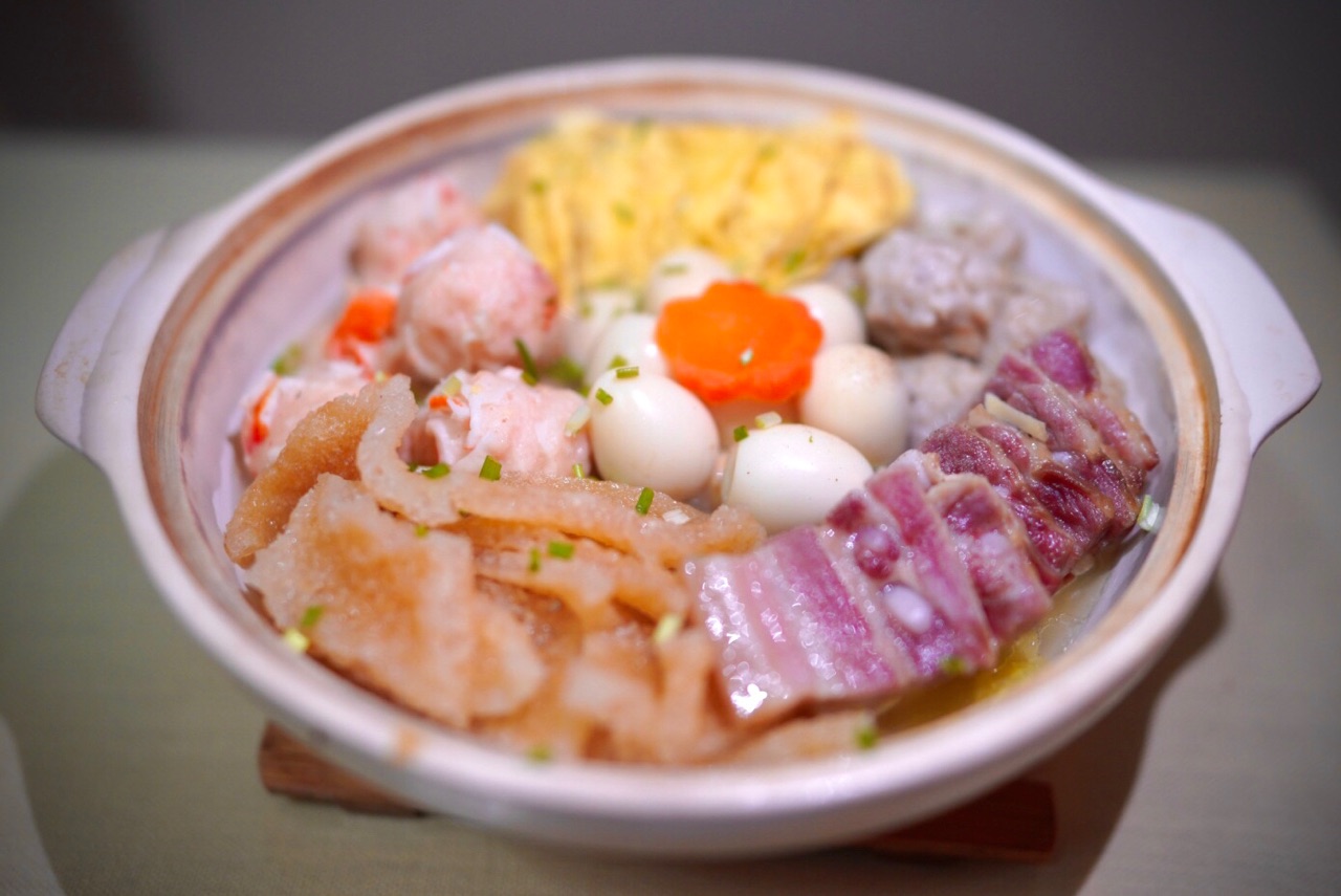步骤10、全家福(蛋饺、咸肉、三林肉皮、鲜虾丸等)