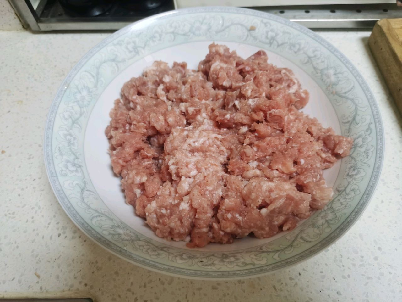 步骤1、新鲜的猪肉洗净后,切成块,用家里的绞肉机直接绞成肉馅,把多余的肉筋一定要拿出来。