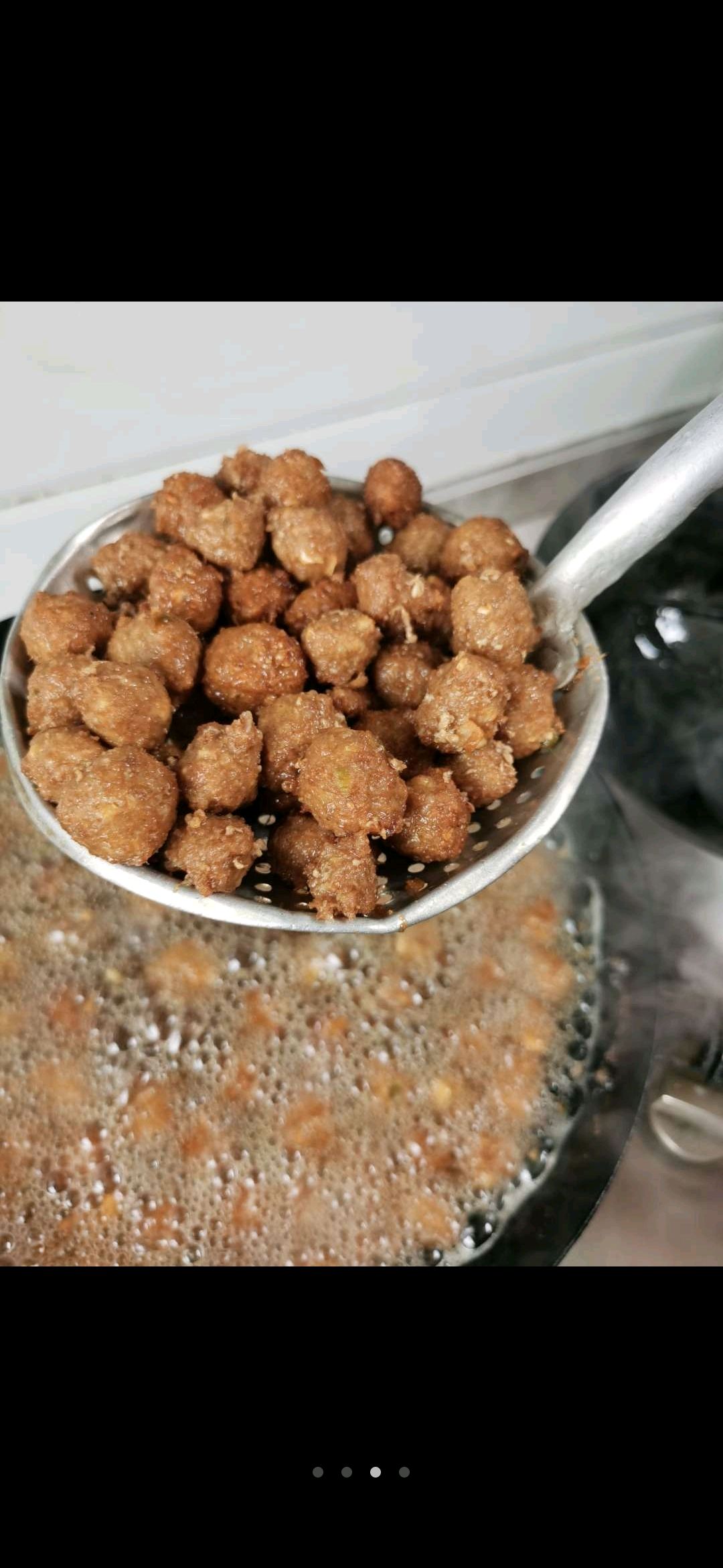 步骤7、锅中放适量油,油温6成热,下如锅中进行炸至金黄捞出。纯肉的炸的时间要长,因为没有加淀粉不蓬松