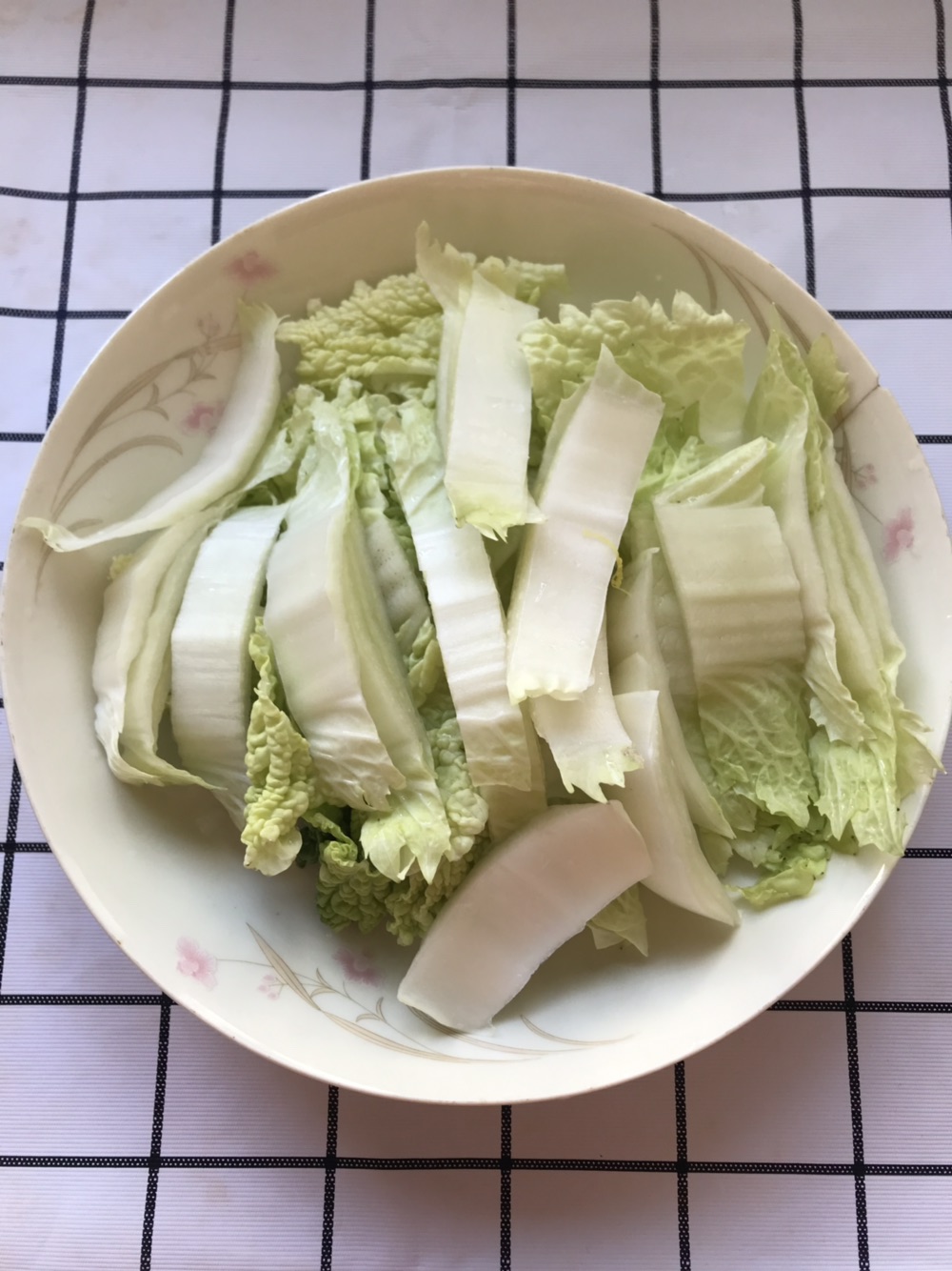 辅料:盐1匙、水300毫升、白菜4片、油2匙