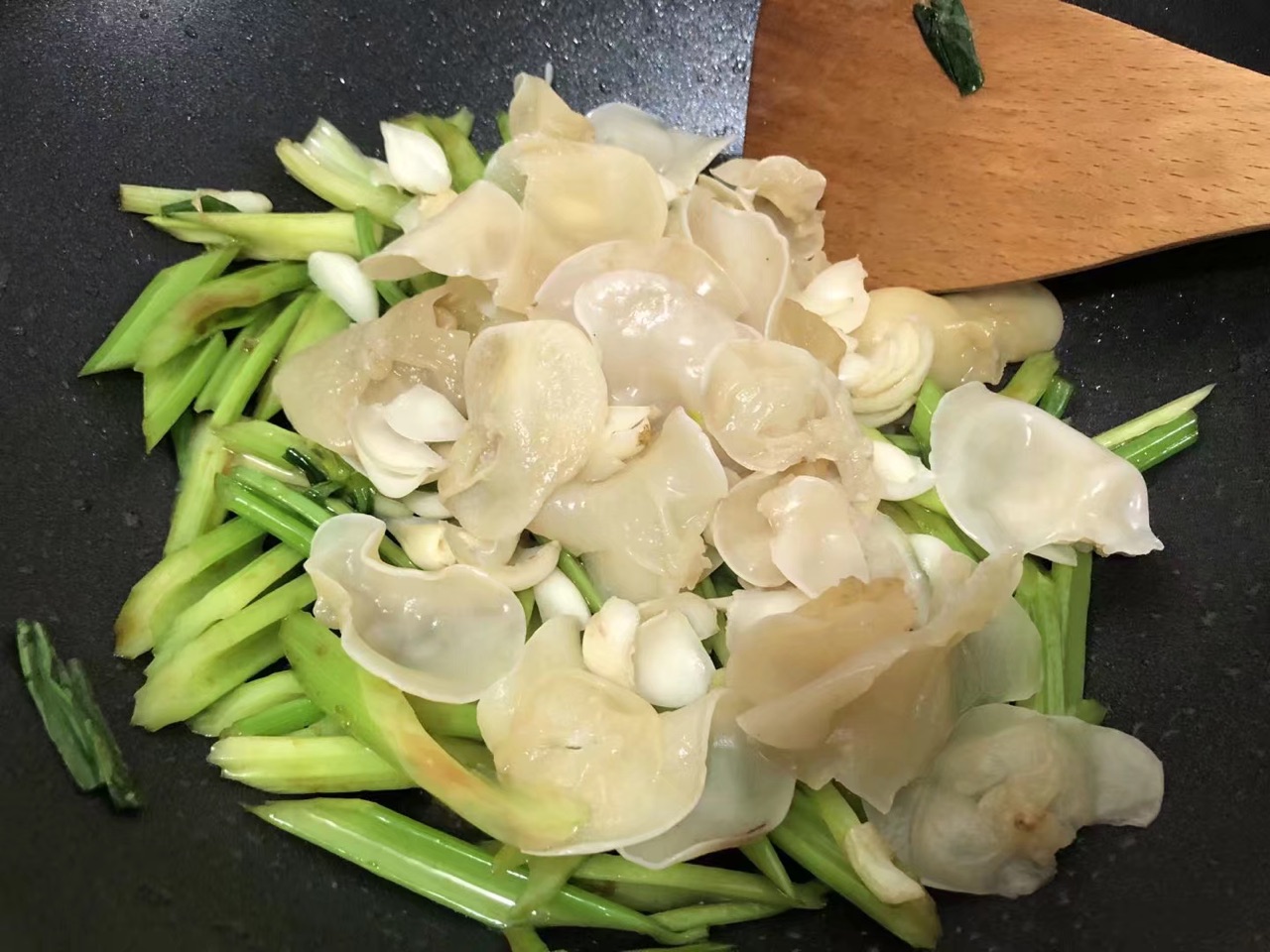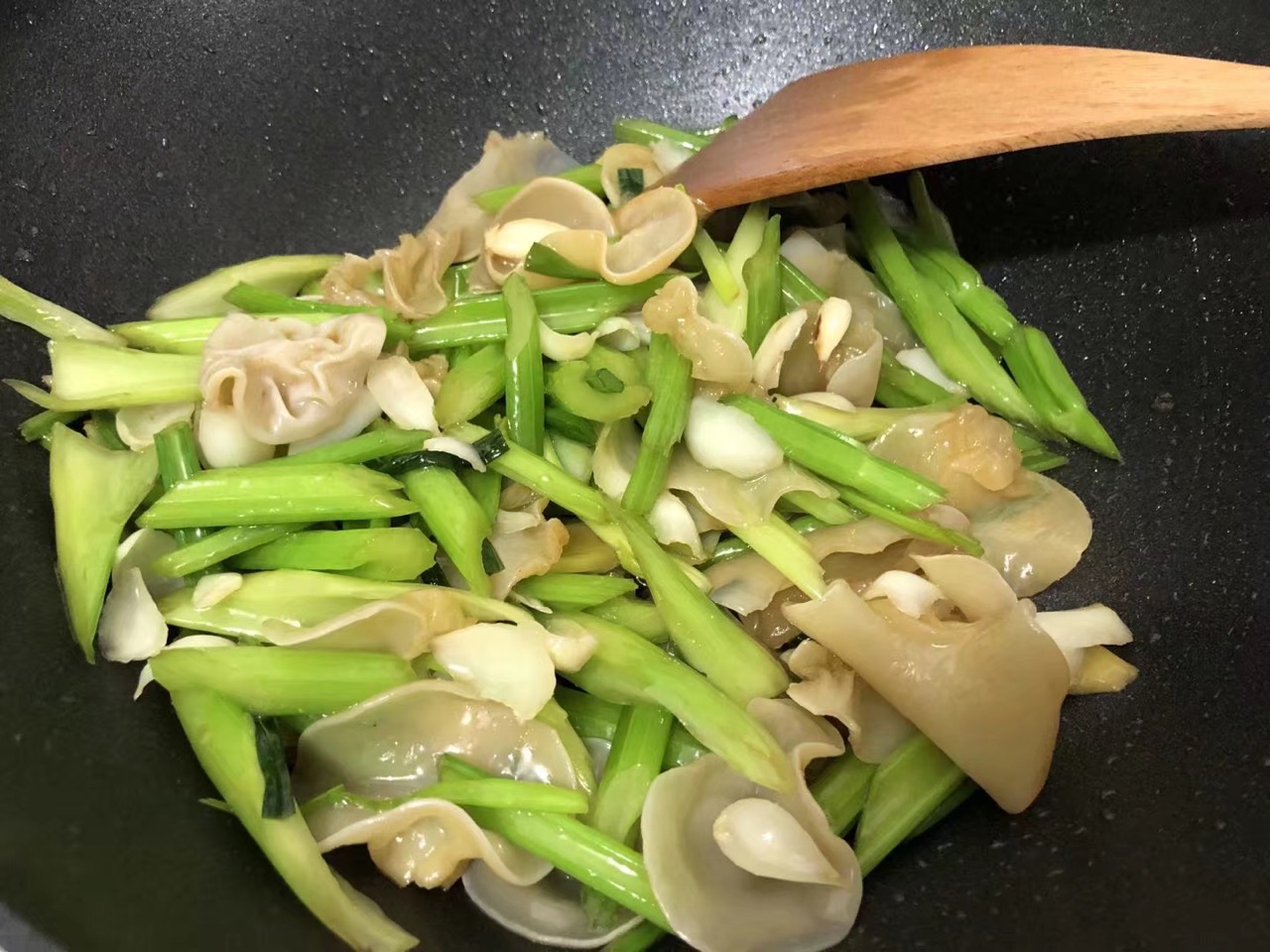 步骤4、倒入西芹焯水一两分钟捞出过凉水