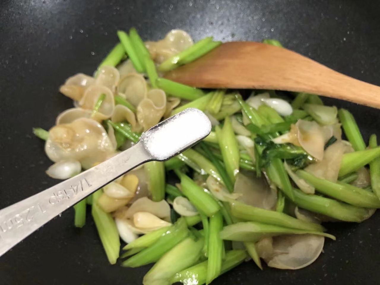 辅料:白木耳干10克、味达美臻品蚝油1勺、小葱2棵、盐3克