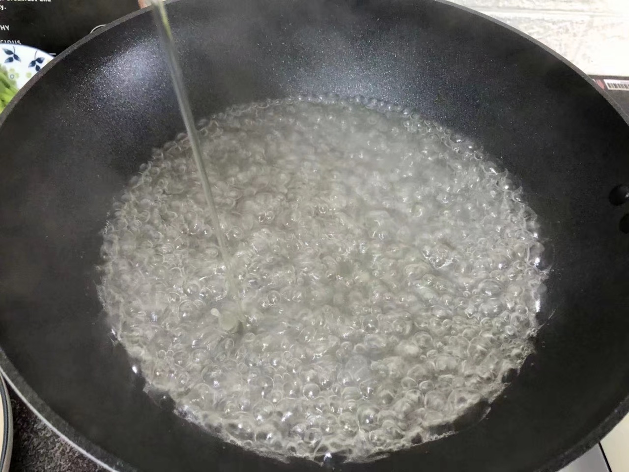 步骤2、锅中烧开水加入少许盐,目的为了让蔬菜更碧绿
