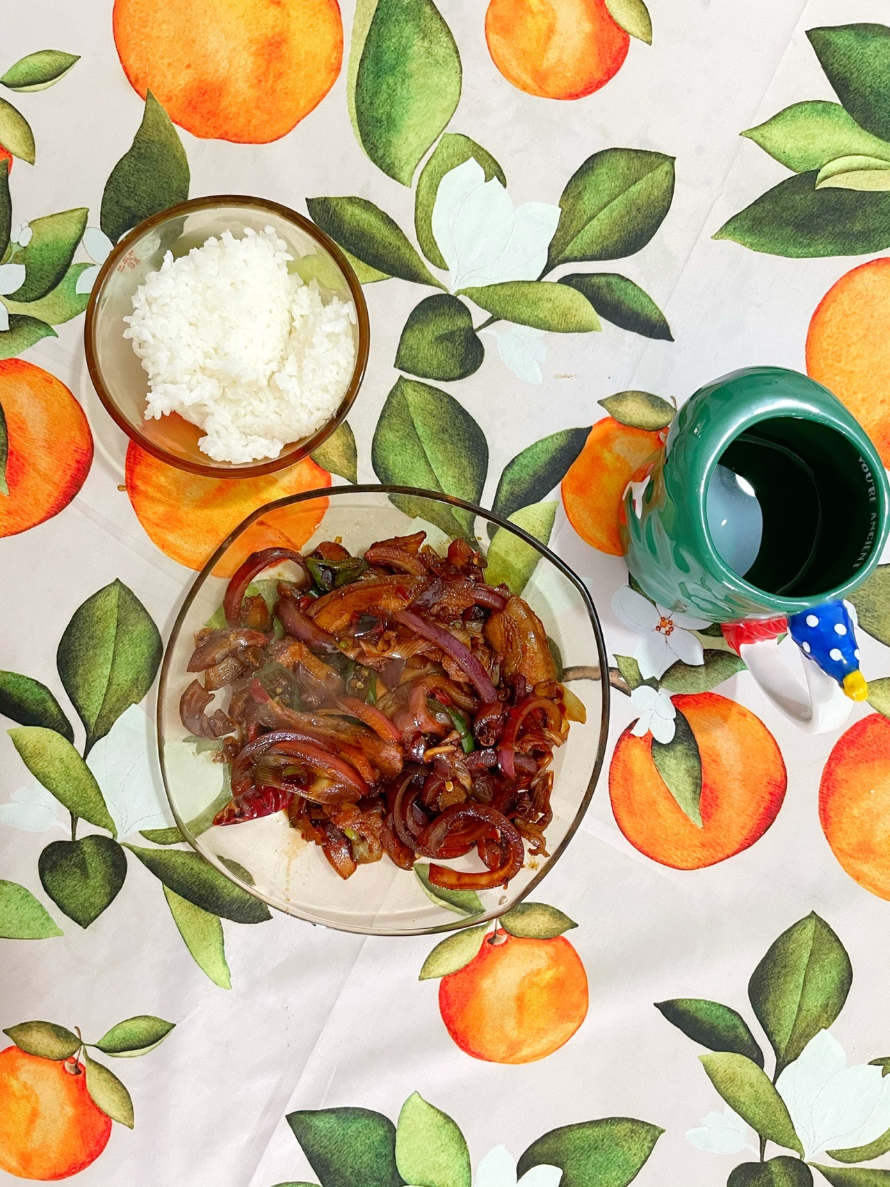 辅料:葱白5段、洋葱半个、花椒一小撮(可要可不要)、姜片4-5小片、蒜末2-3小颗、郫县豆瓣酱1勺、盐适量、白砂糖一小小撮、食用油适量、酱油1勺、生抽1勺、胡椒粉1勺、干辣椒6个