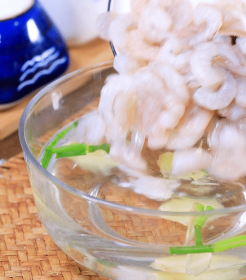 步骤1、虾仁倒入葱姜水,浸泡20分钟。