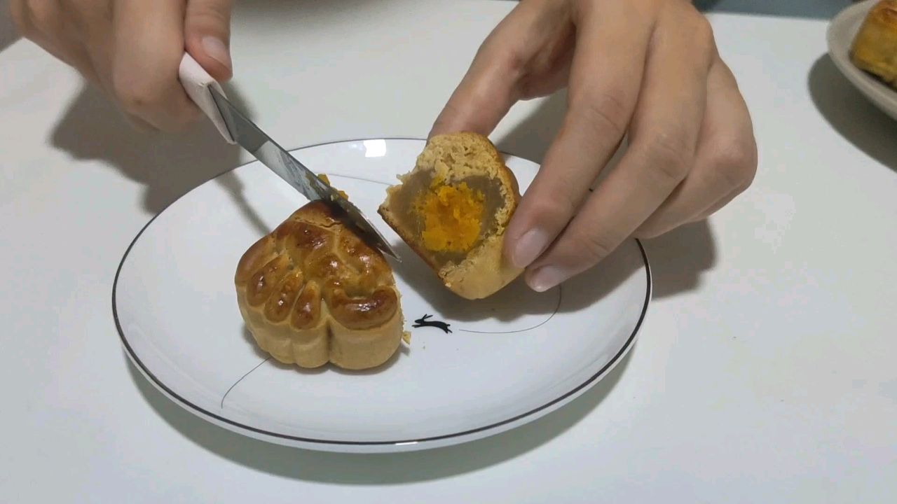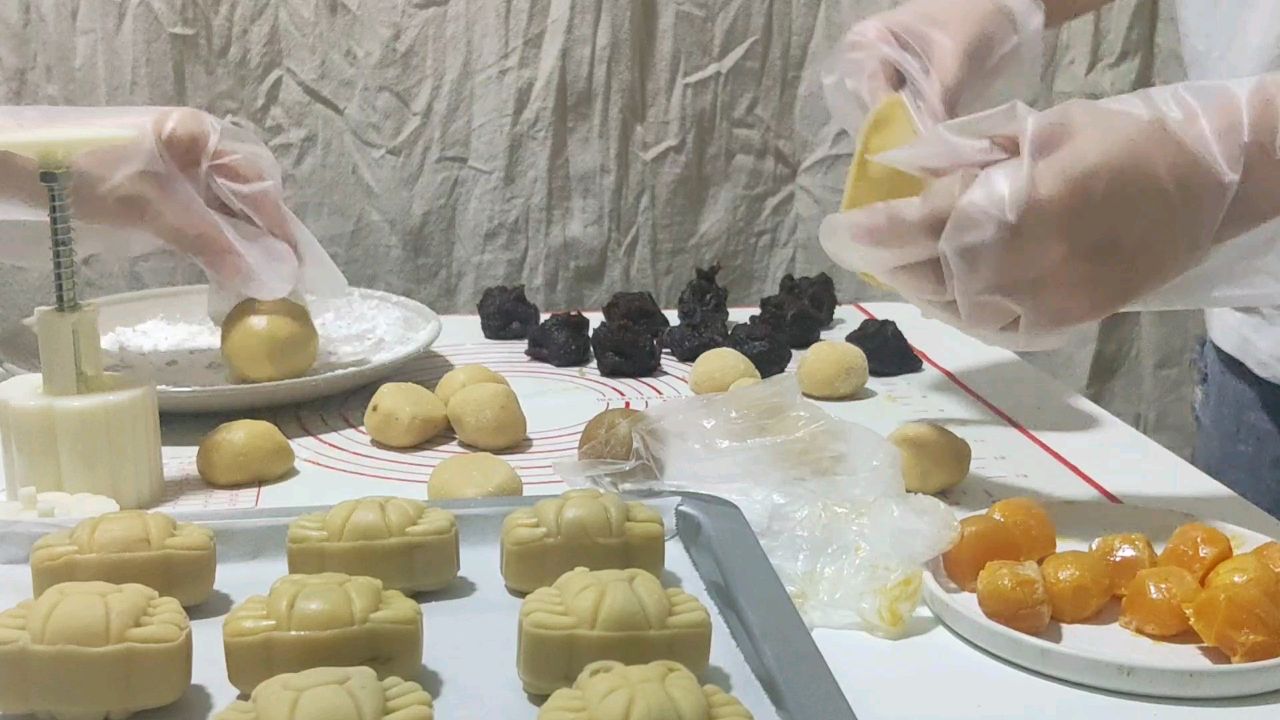 步骤13、烤好的月饼,建议室温放2天再吃,蛋黄会回油。我是用了真空的包装包装好的,然后再放置。