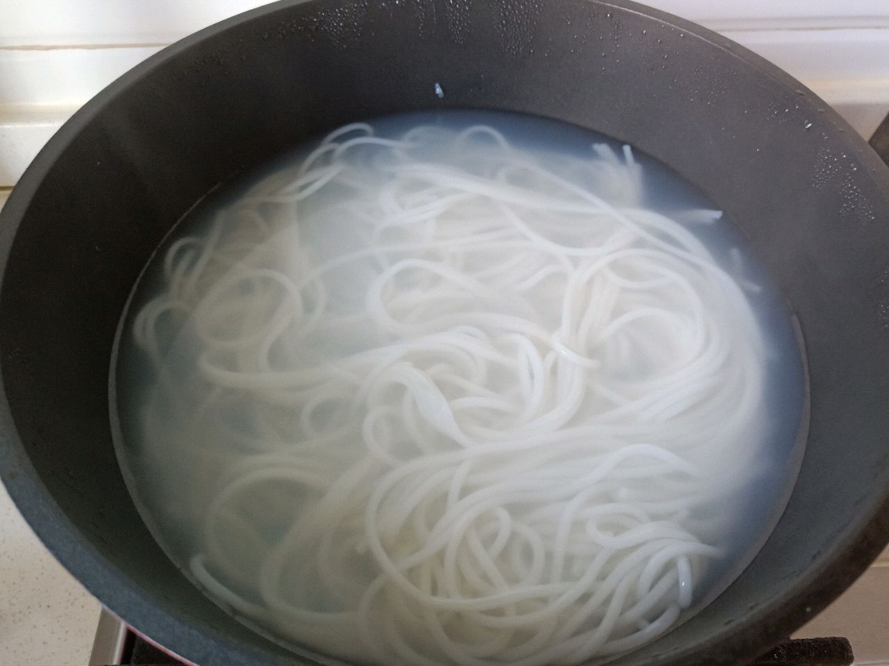 步骤2、米粉是水烧开之后放进去焖了十分钟之后的样子,细的粉需要减少时间