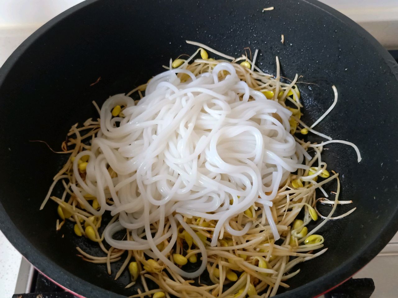 辅料:胡萝卜半根、芹菜一根、黄豆芽适量、鲜辣汁两勺、蚝油1勺、酱油1勺
