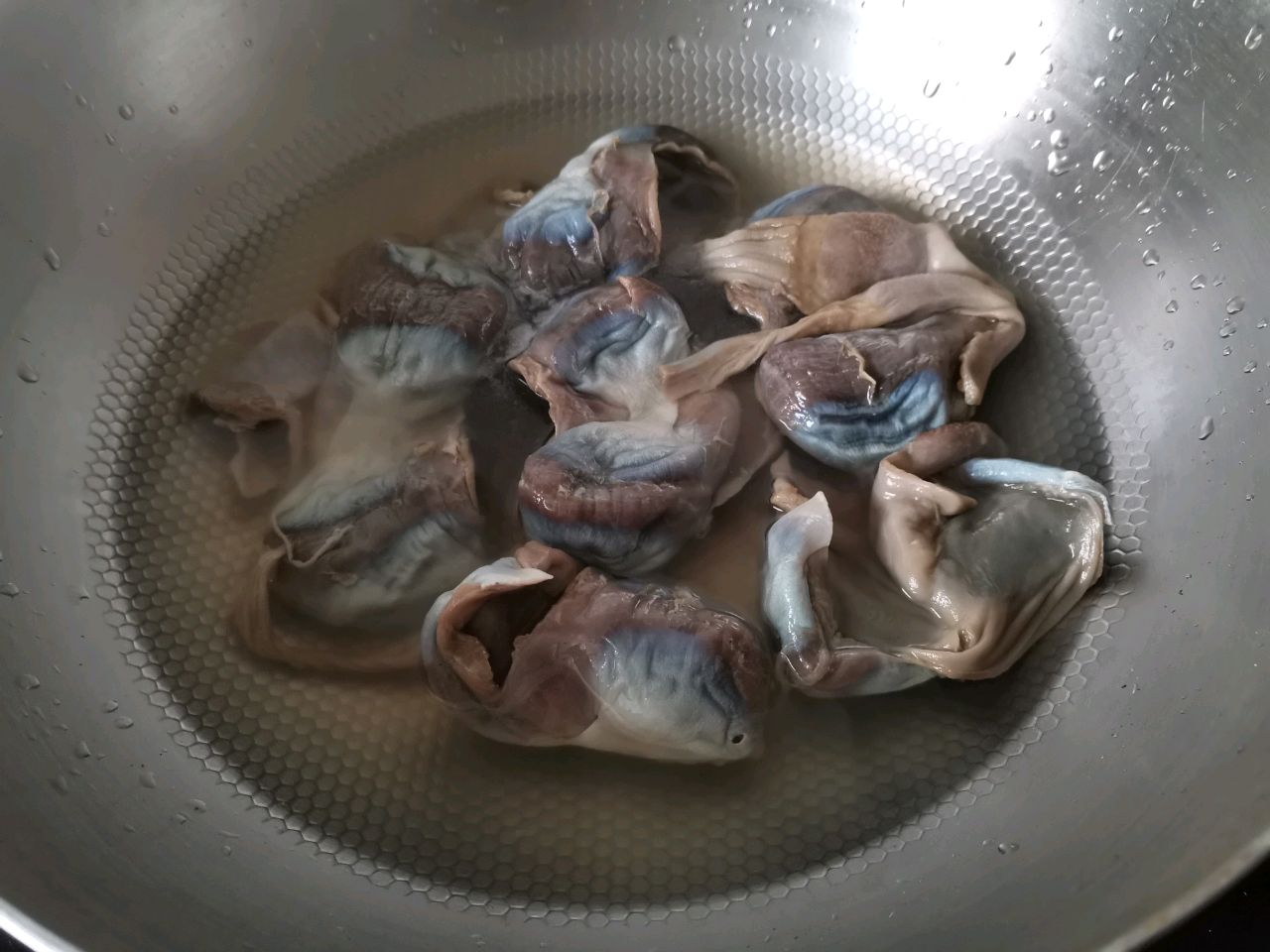 步骤1、鸭胗清洗干净。腌制过的要用清水浸泡两小时。