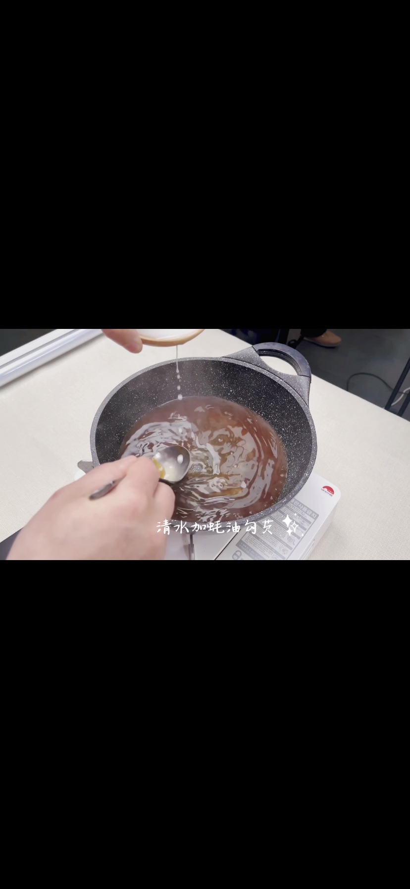 步骤4、水开了加水淀粉加一点蚝油搅拌调个汁