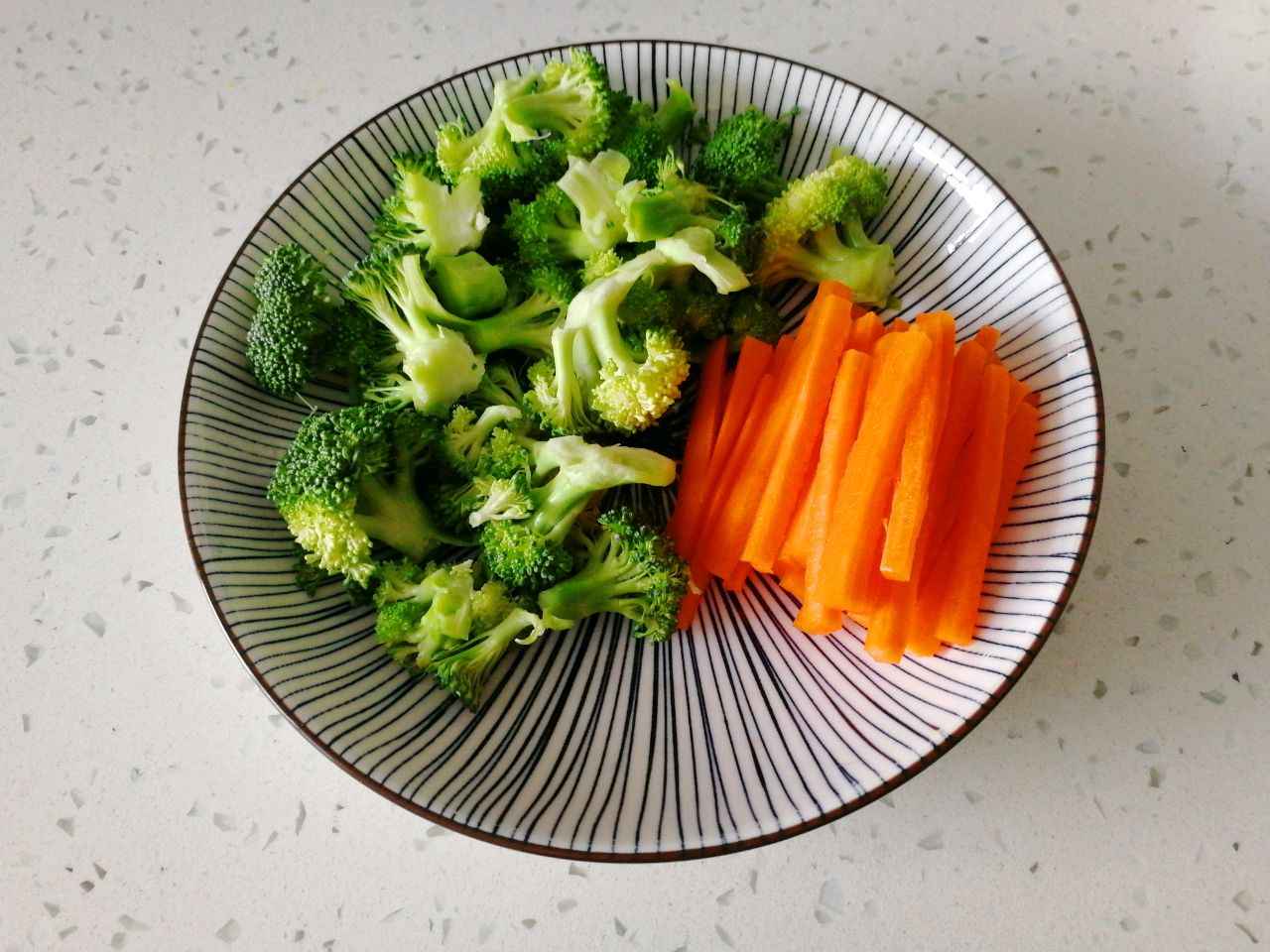 步骤5、锅中加水,水开将胡萝卜和西兰花焯一下水盛出备用。