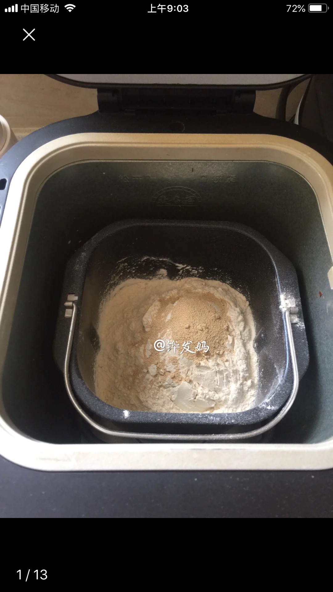 步骤2、称好所有材料,放面包机揉面,面包机揉面18分钟左右