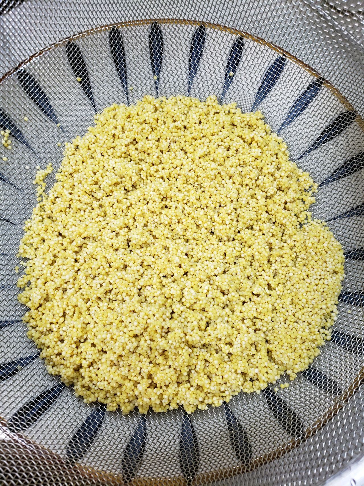 步骤1、小米洗净,清水浸泡4小时以上,这样蒸出来口感才会软糯。我一般提前一晚浸泡,第二天中午用。