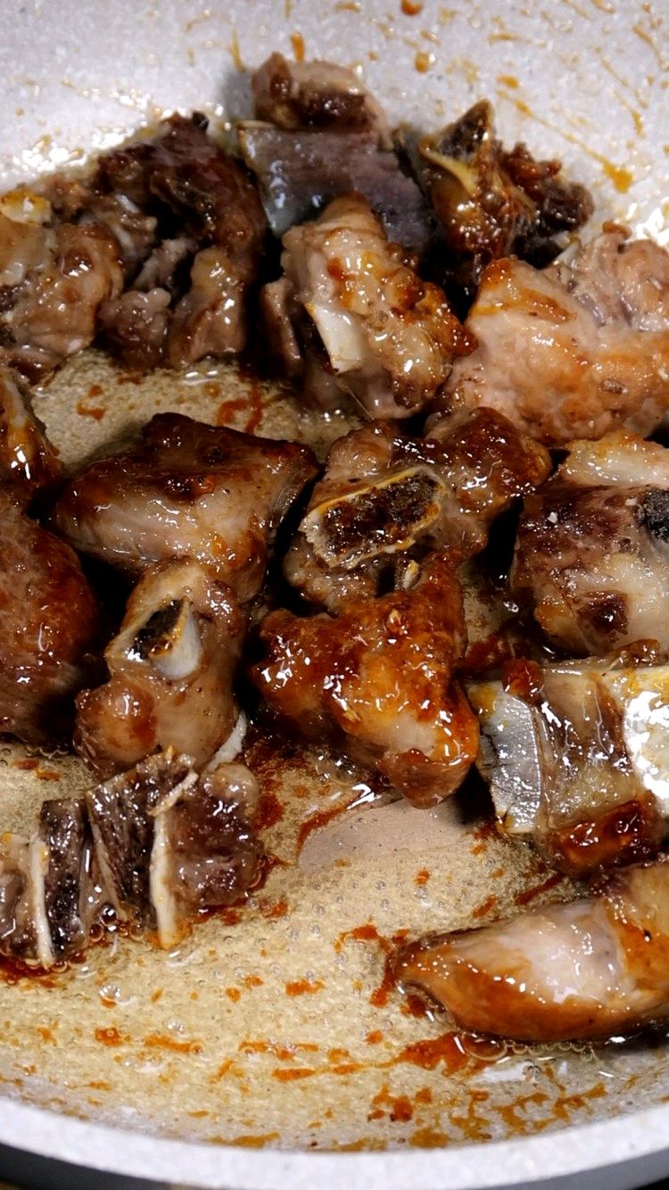 步骤6、倒入排骨翻炒,再加水没过排骨