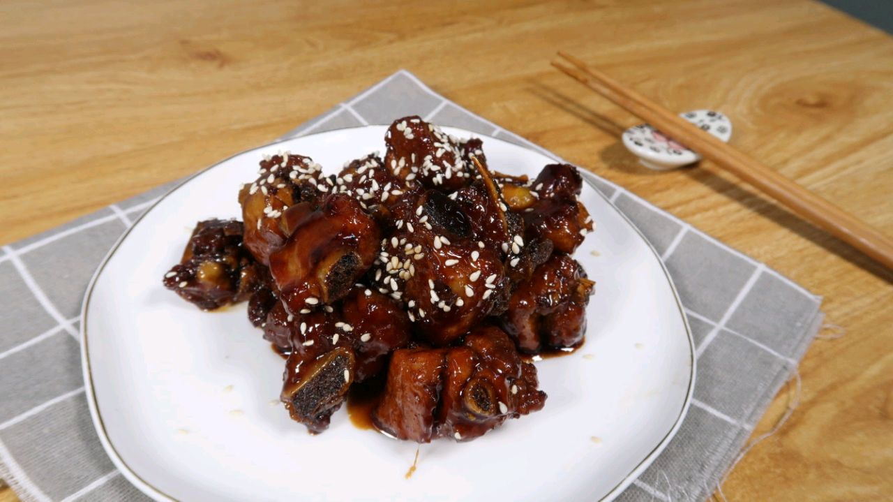 辅料:冰糖80克、盐少许、生抽35克、老抽10克、醋65克、芝麻10克
