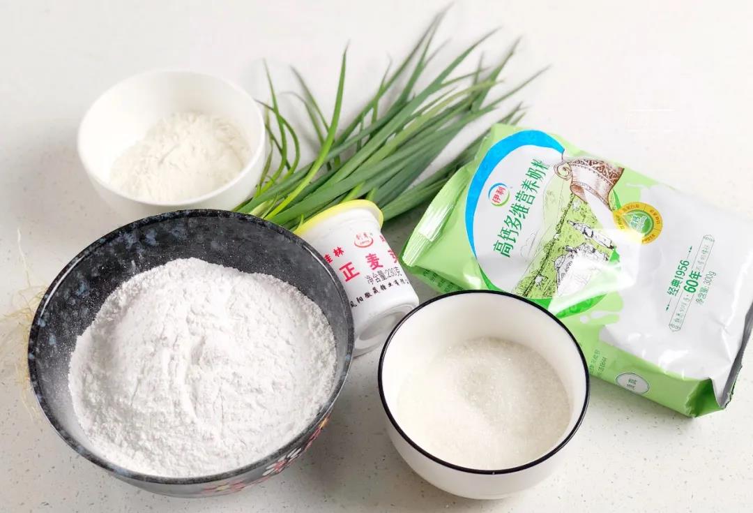 辅料:面粉50g、糯米粉250g、葱花适量、清水60g、白糖100g
