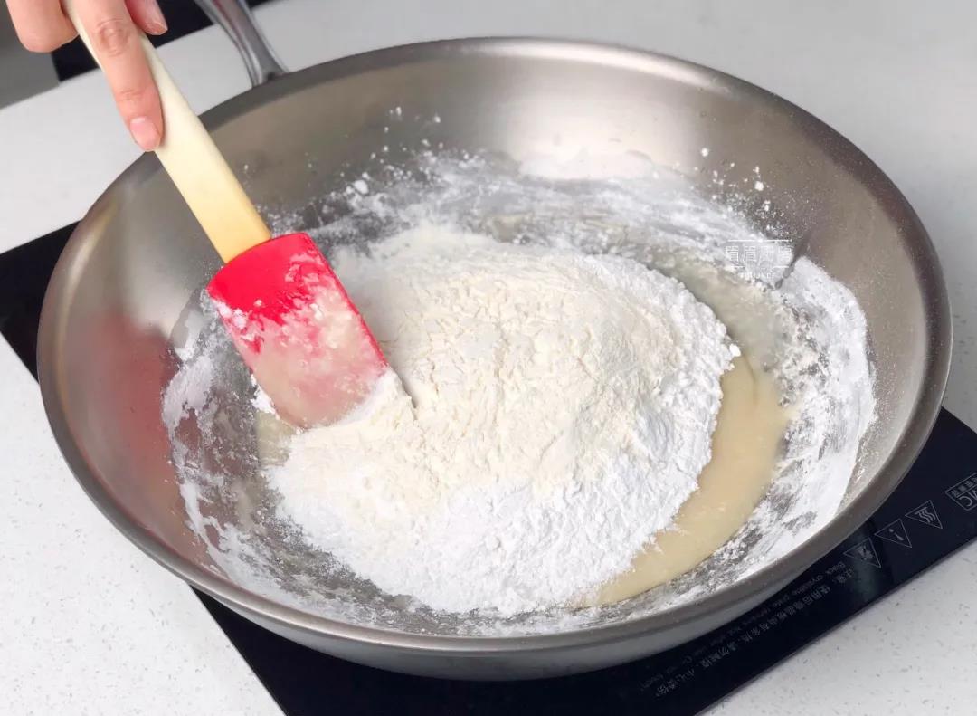 步骤3、倒入125克糯米粉;