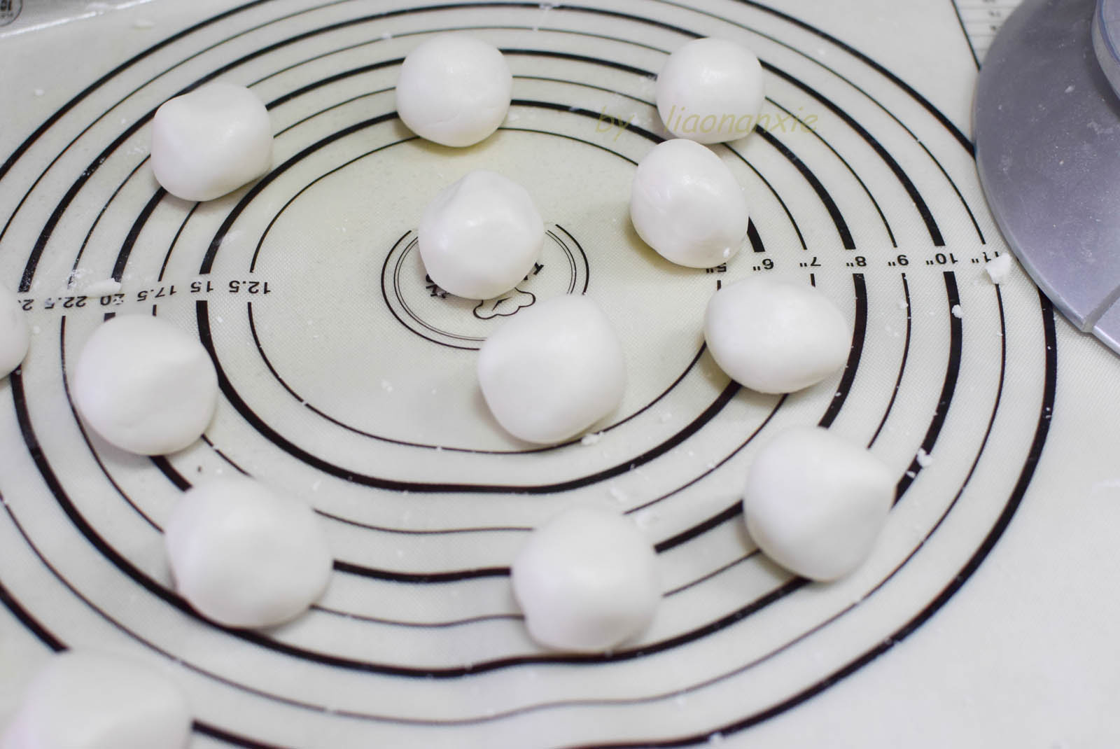 步骤4、把面团分成约20克重的小块,揉圆备用。