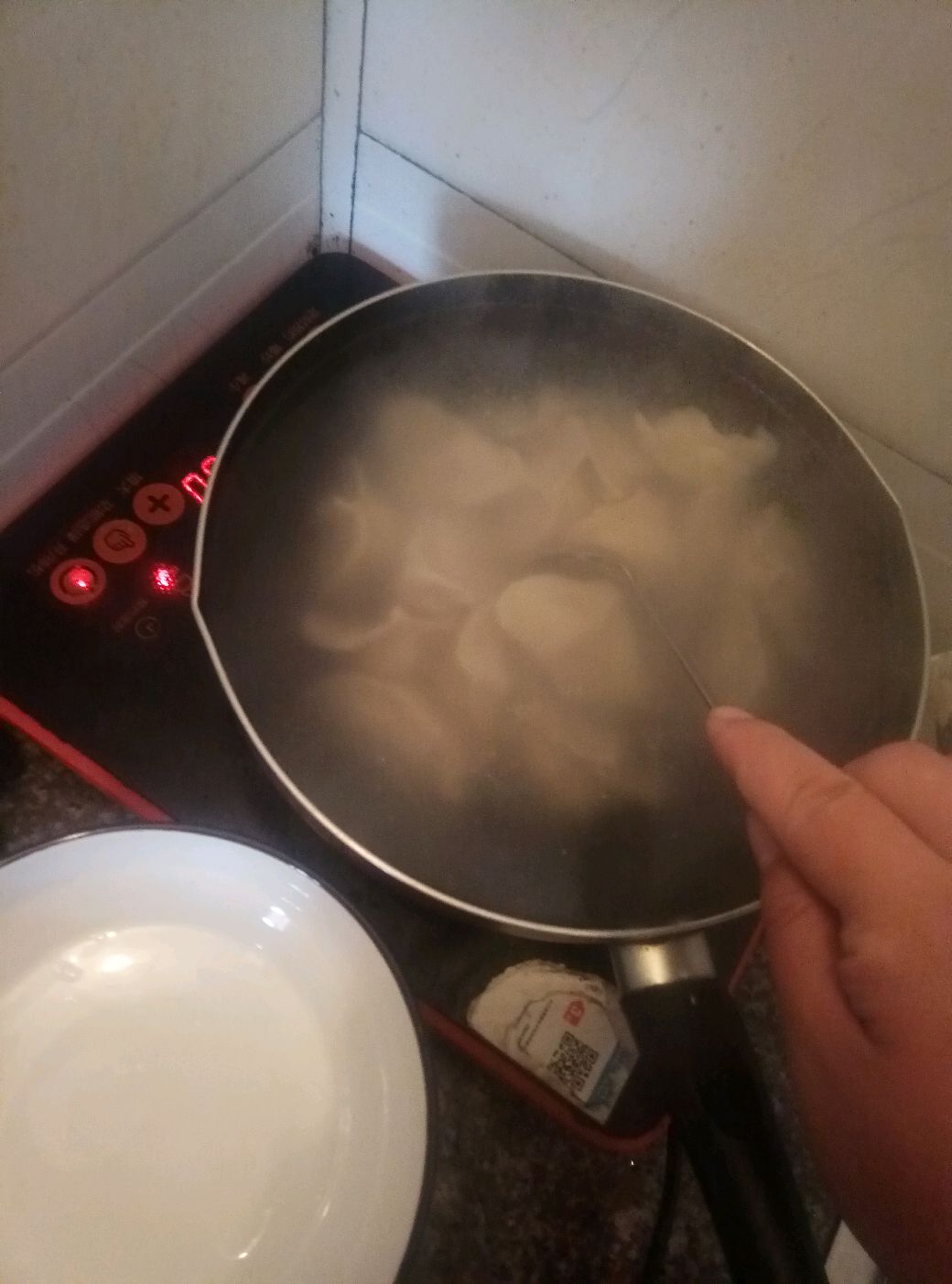 步骤4、开始包,准备干面粉防止蘸底,烧水看自己包饺子的进度,包好,水开,加盐下饺子,抄锅底,防止饺子蘸锅底,浮起后适当搪饺子,让饺子在锅里翻身,再次开锅加适量凉水,素饺子,饺子皮变亮就差不多了,捞一个尝尝,合适就捞起,不合适在煮一会