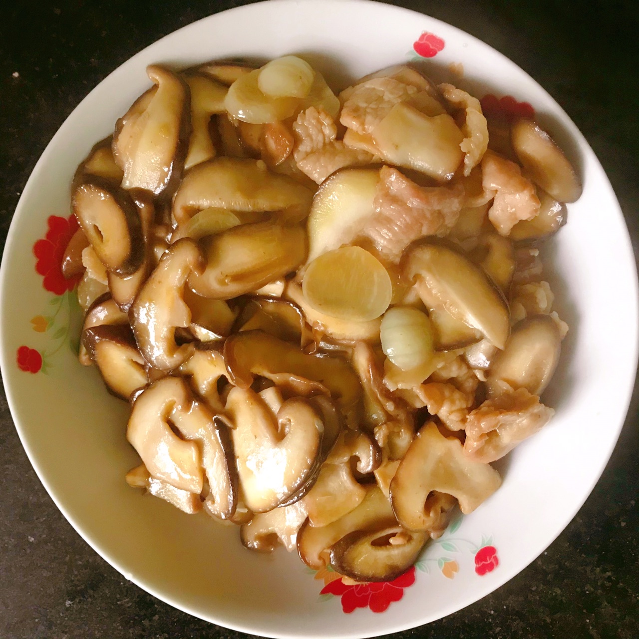 主料:鲜香菇9朵、猪肉片(瘦)90克