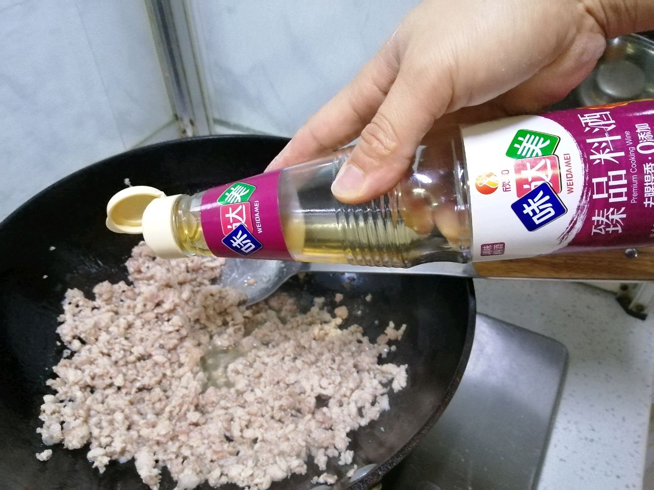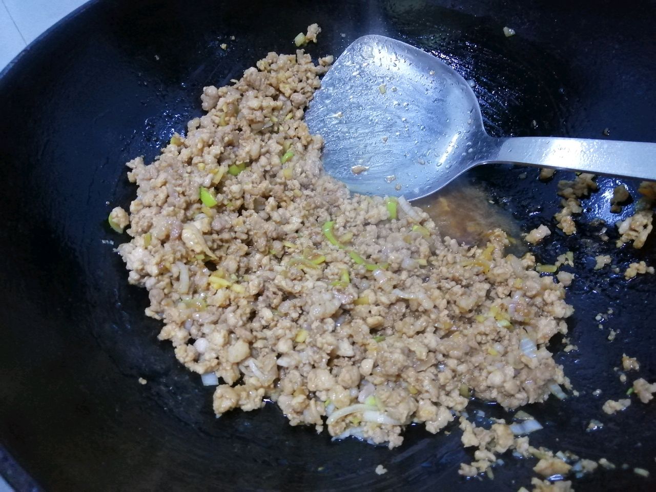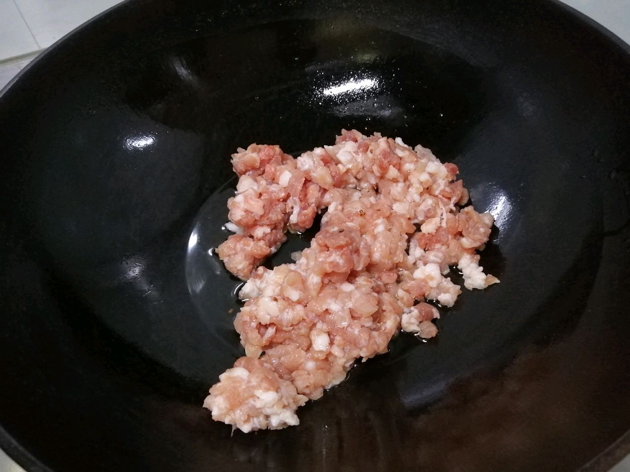 步骤6、加入切好的香菇丁、木耳丁翻炒均匀