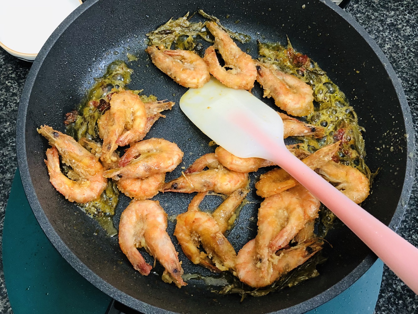 步骤13、加入煎好的基围虾;