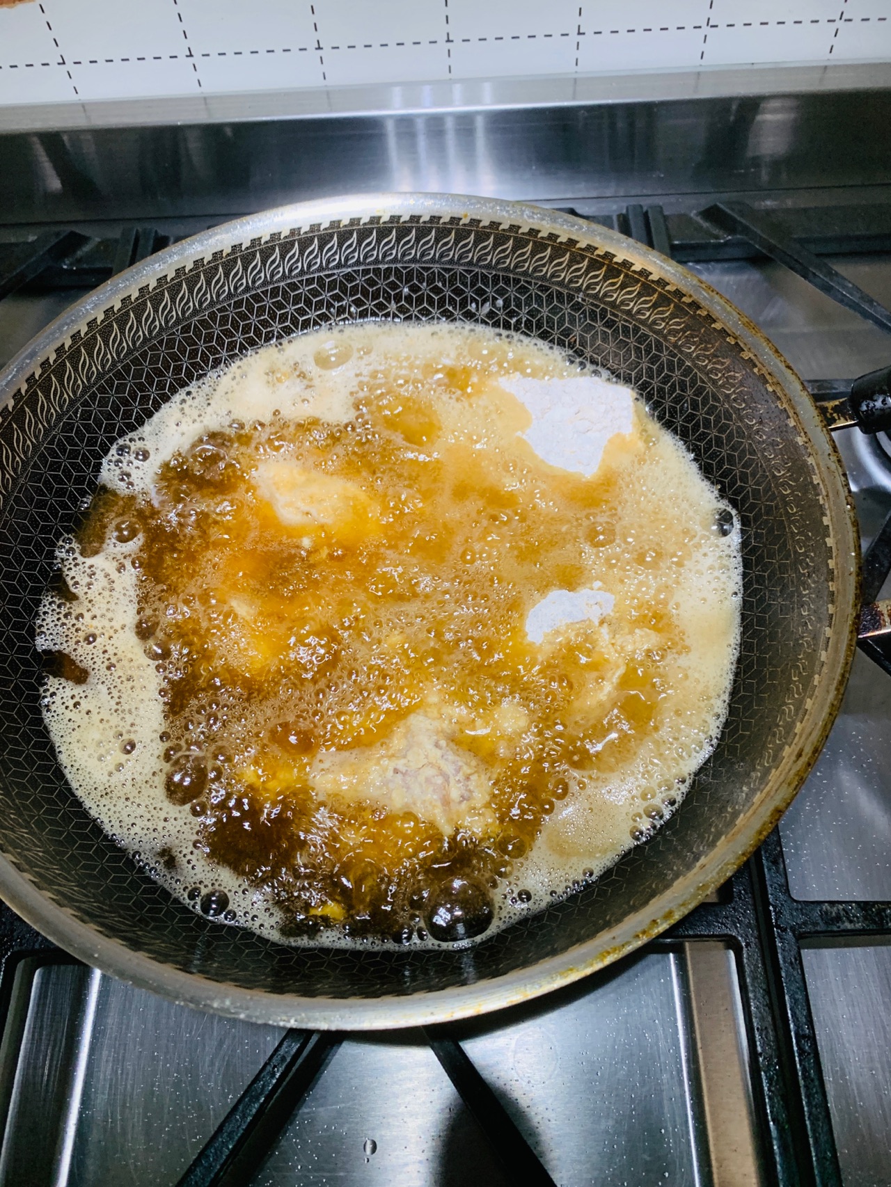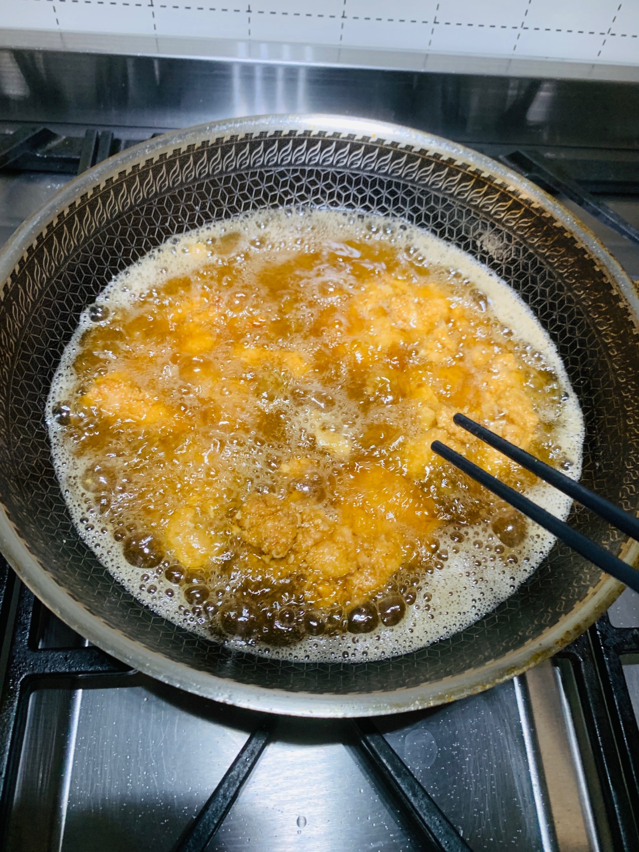 步骤9、炸至金黄翻面