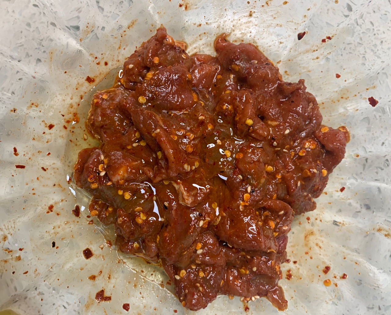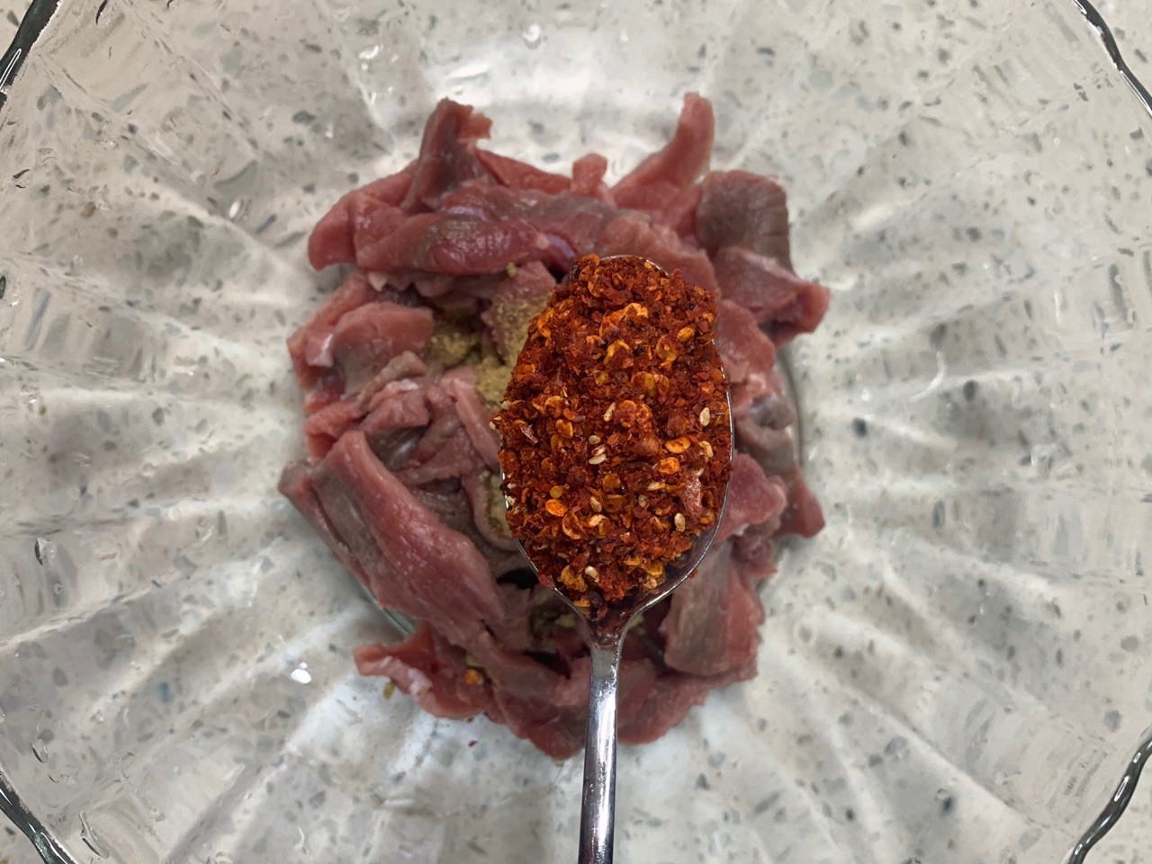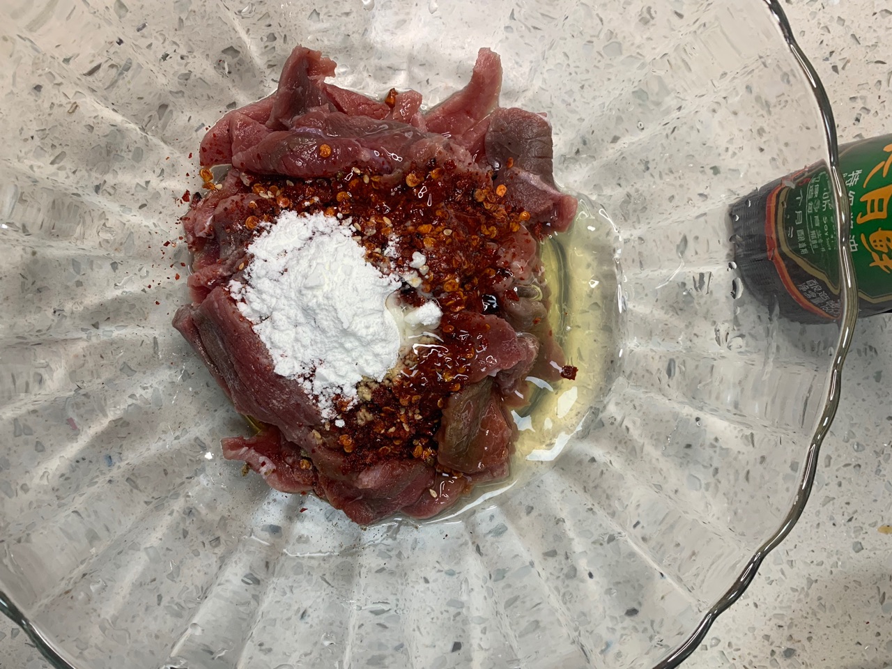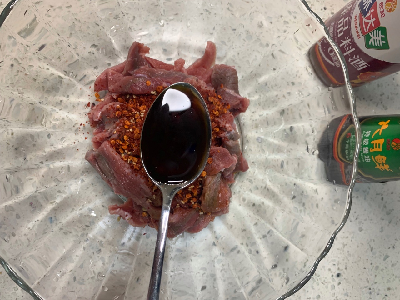 步骤1、牛肉切稍厚一点的片洗干净沥干水分