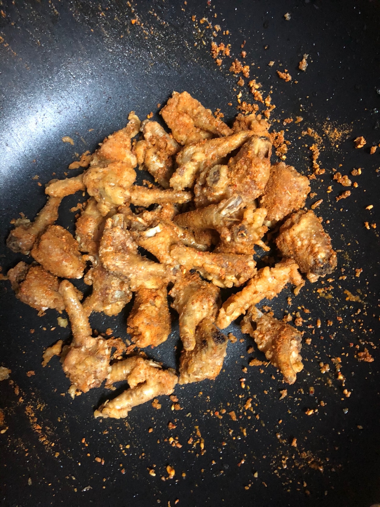步骤5、炸的微微泛黄(喜欢脆一点的朋友可以多炸一会儿)加上烤肉蘸料和孜然粉、喜欢吃辣的朋友加点辣椒粉
