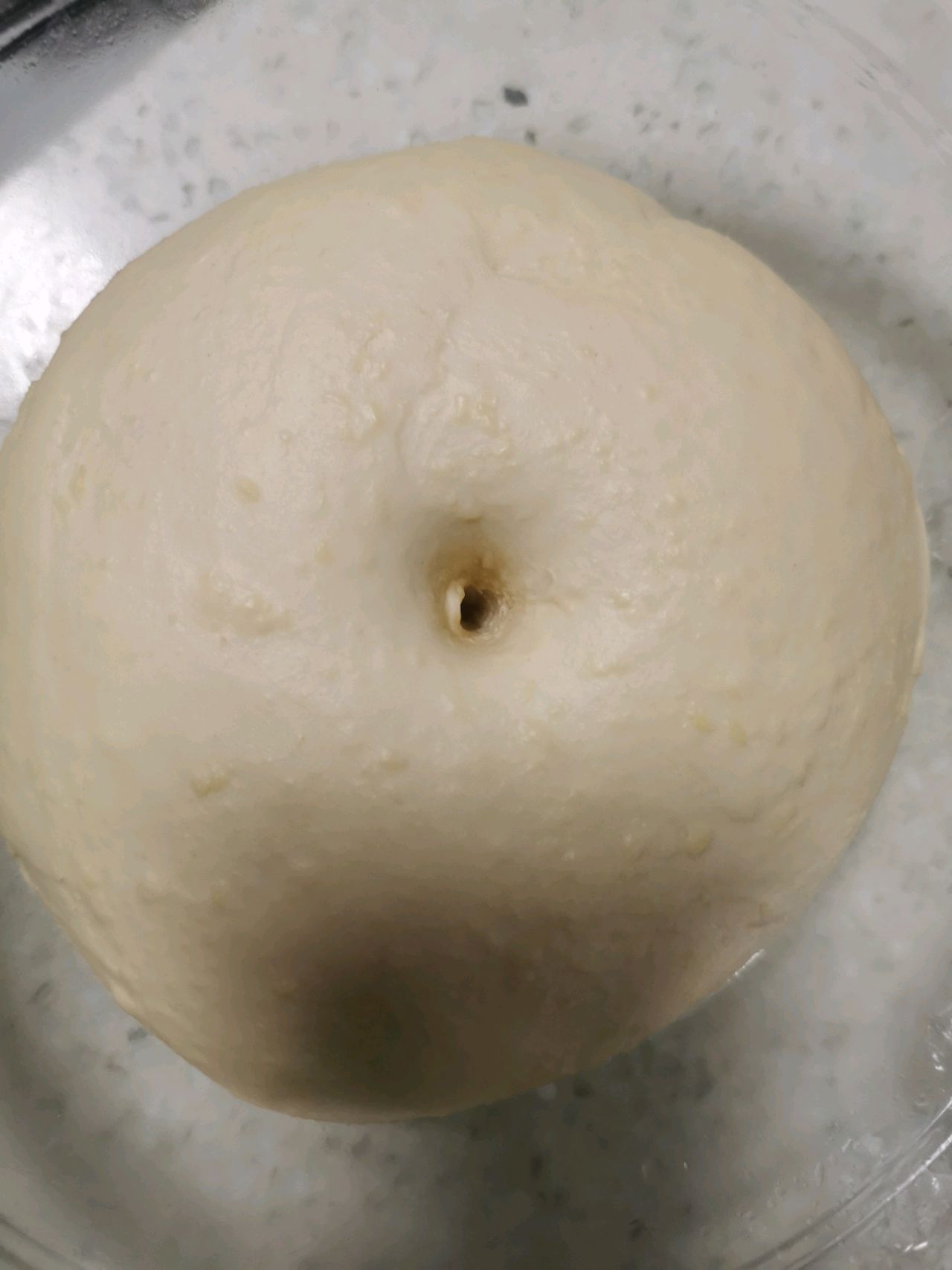 步骤9、发酵至两倍大用手指戳个小洞不会往回塌陷就可以了