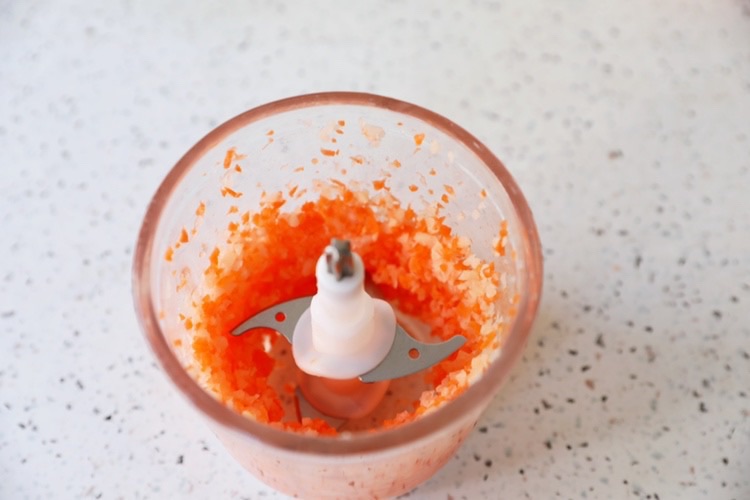 步骤5、莲藕和胡萝卜放入料理机打成末