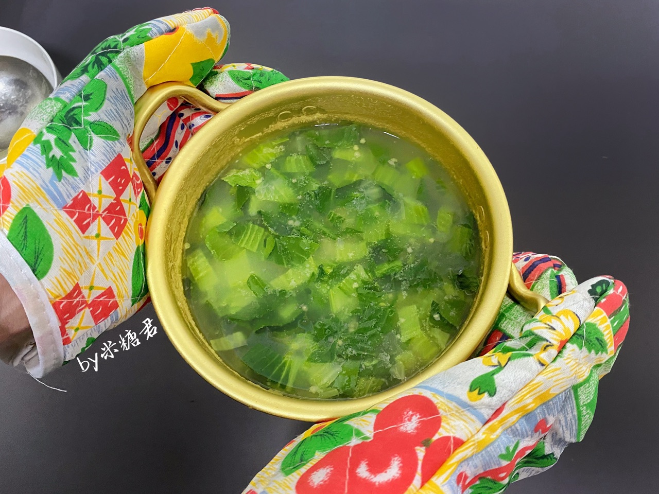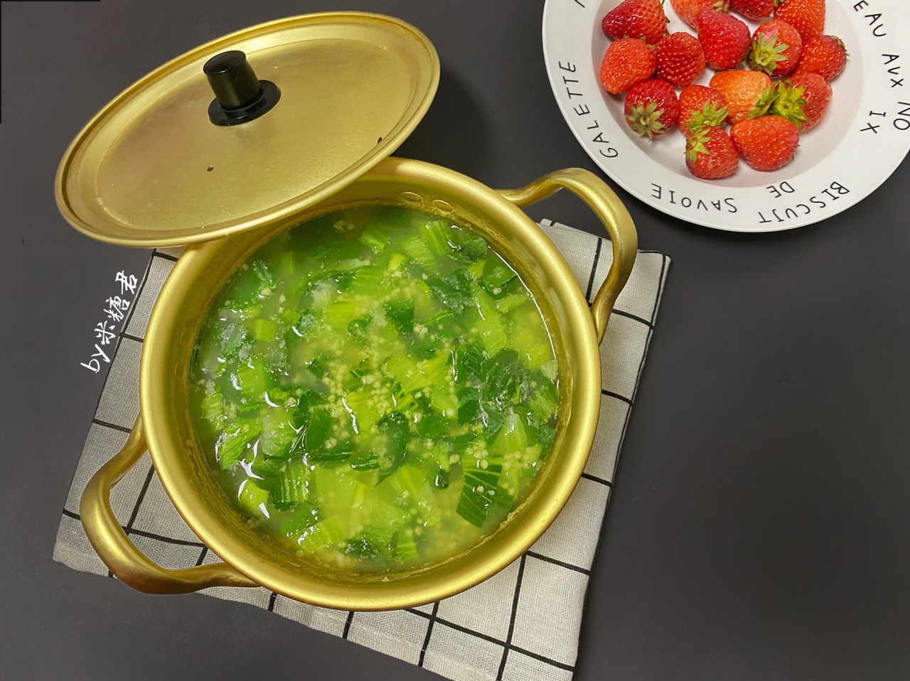 品牌送的桃花小米,和青菜搭配,健康清爽一口一口喝下去。