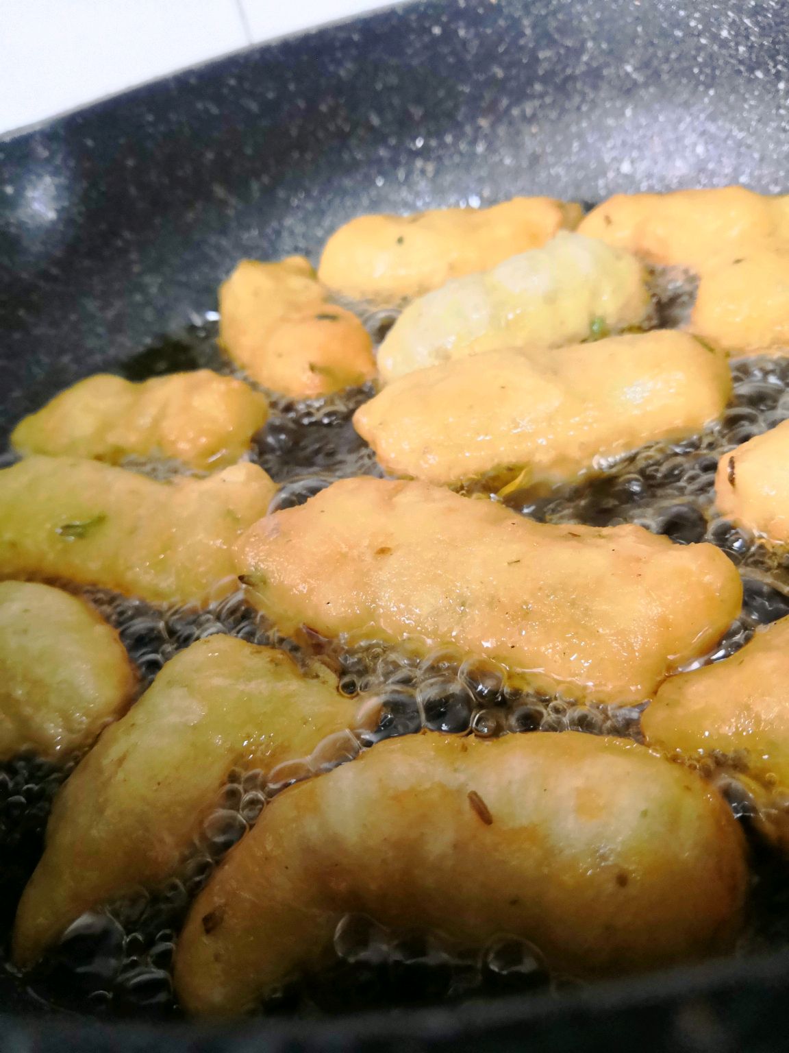 步骤8、这会千万不要离开锅,来回翻转油馍头,这样可以受热均匀。