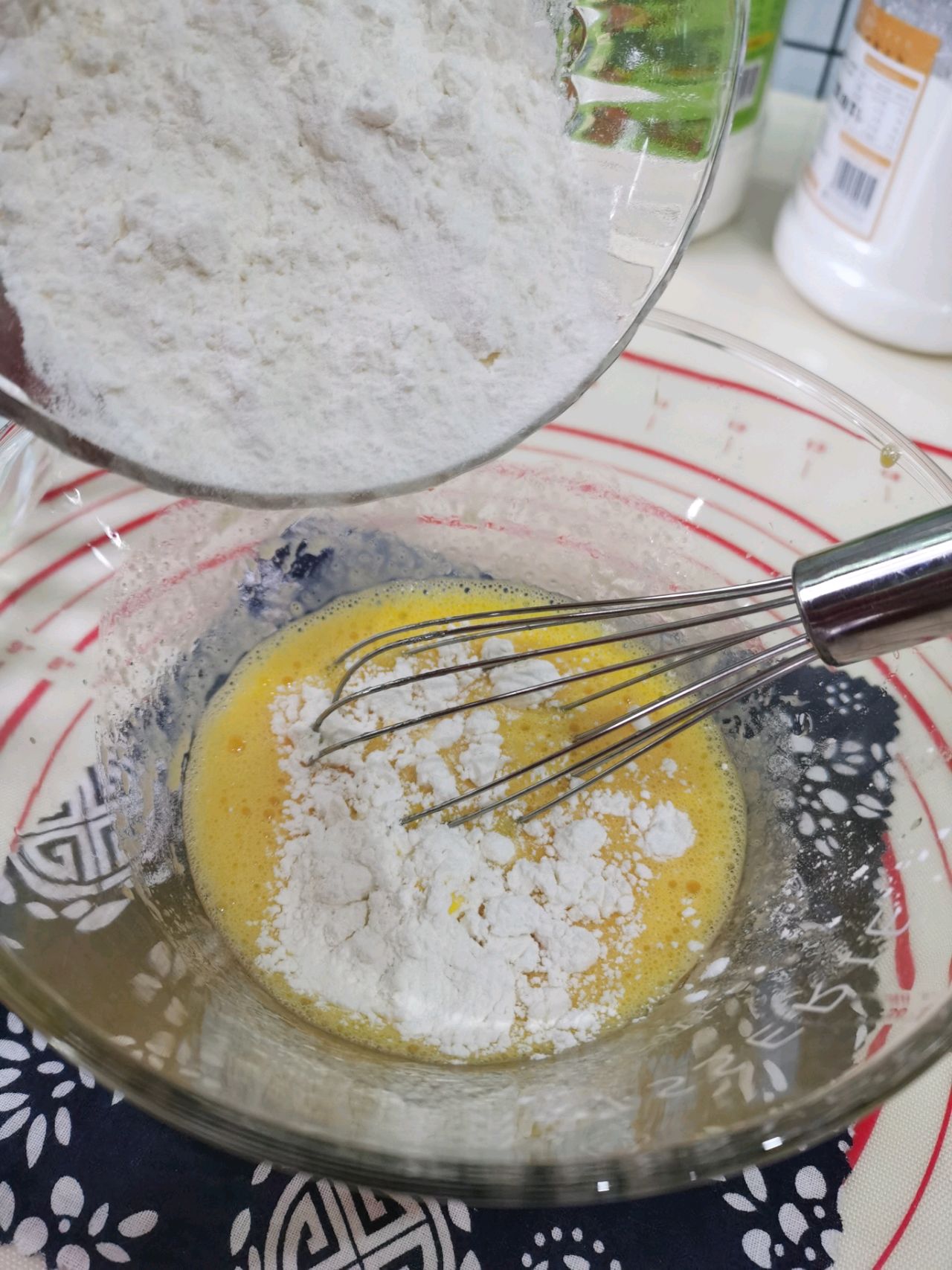 步骤3、倒入低粉+玉米淀粉,搅拌均匀
