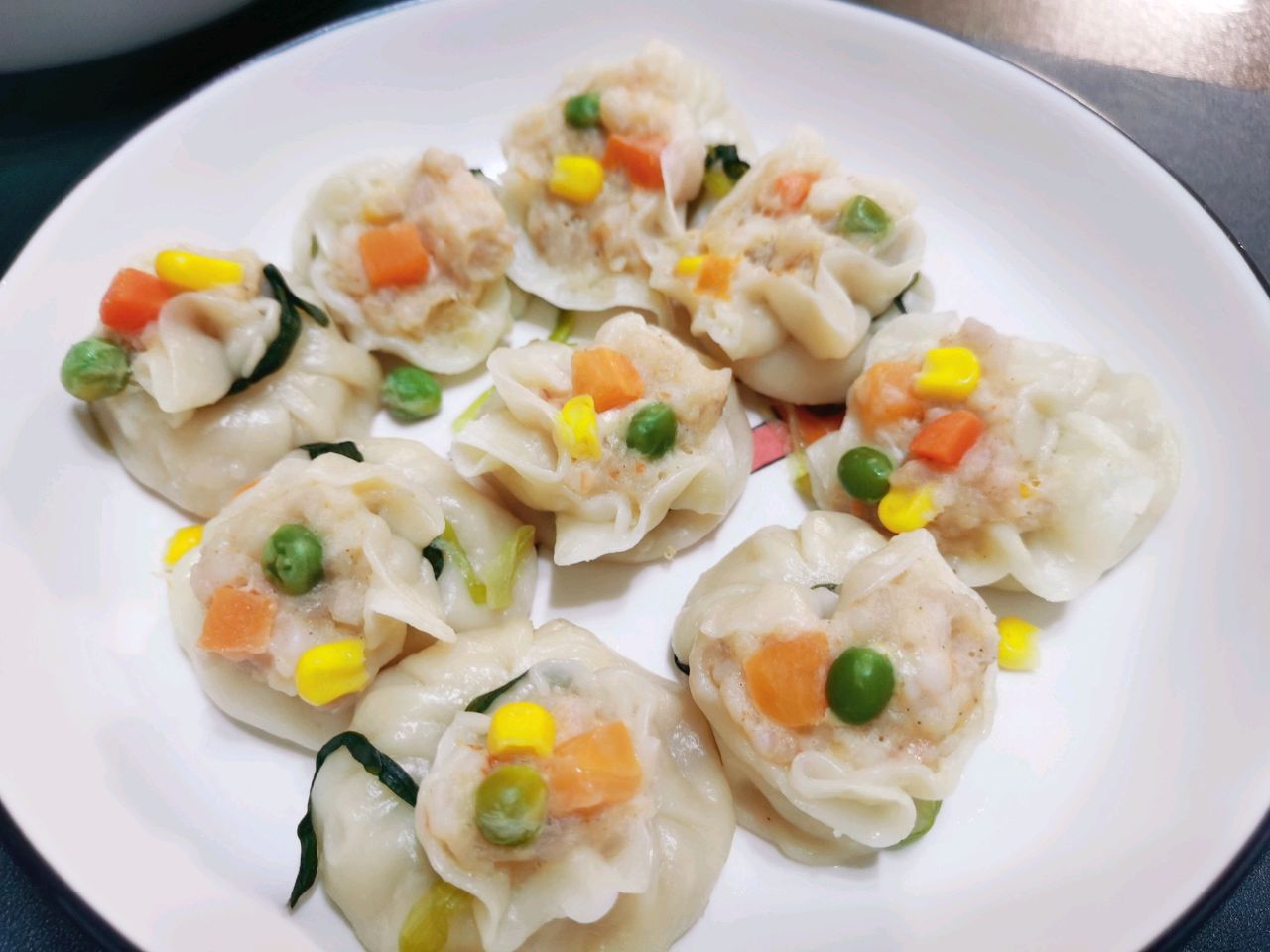 主料:鲜虾6只、玉米豌豆胡萝卜藕适量