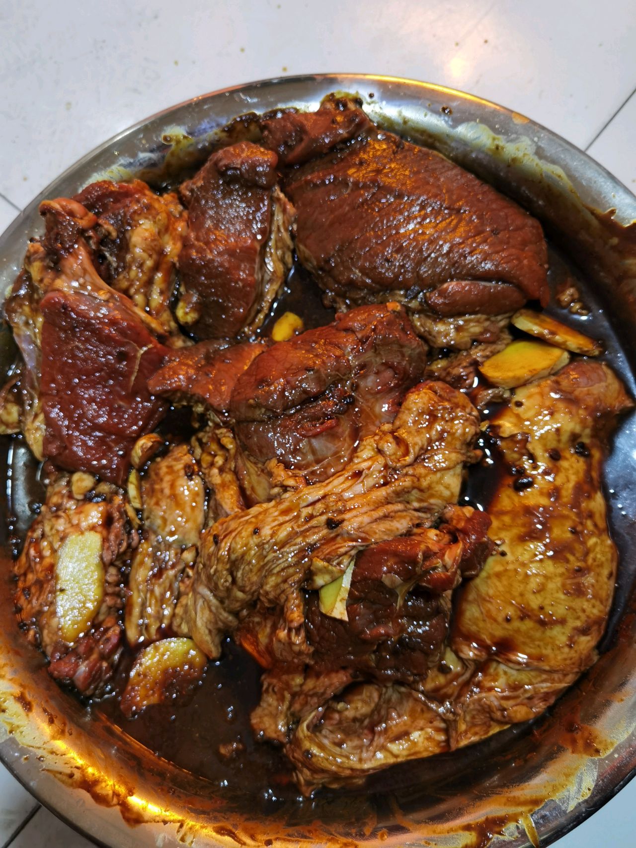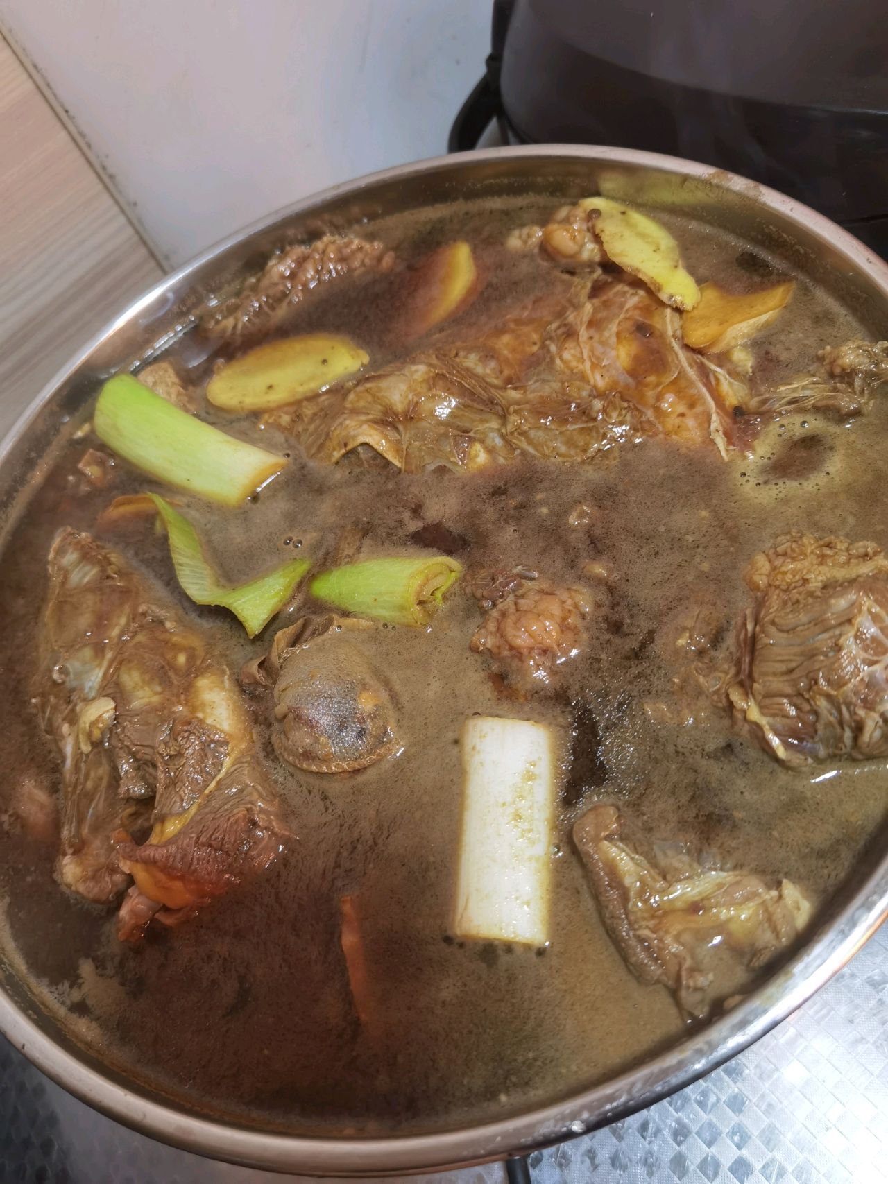 辅料:生抽200g、盐10g、干黄酱半包、十三香10g、料酒50g、冰糖2块至4块、干辣椒怕辣可不下、纯净水淹过食材、炖牛肉,炖羊肉包一包(1元一包的就行)