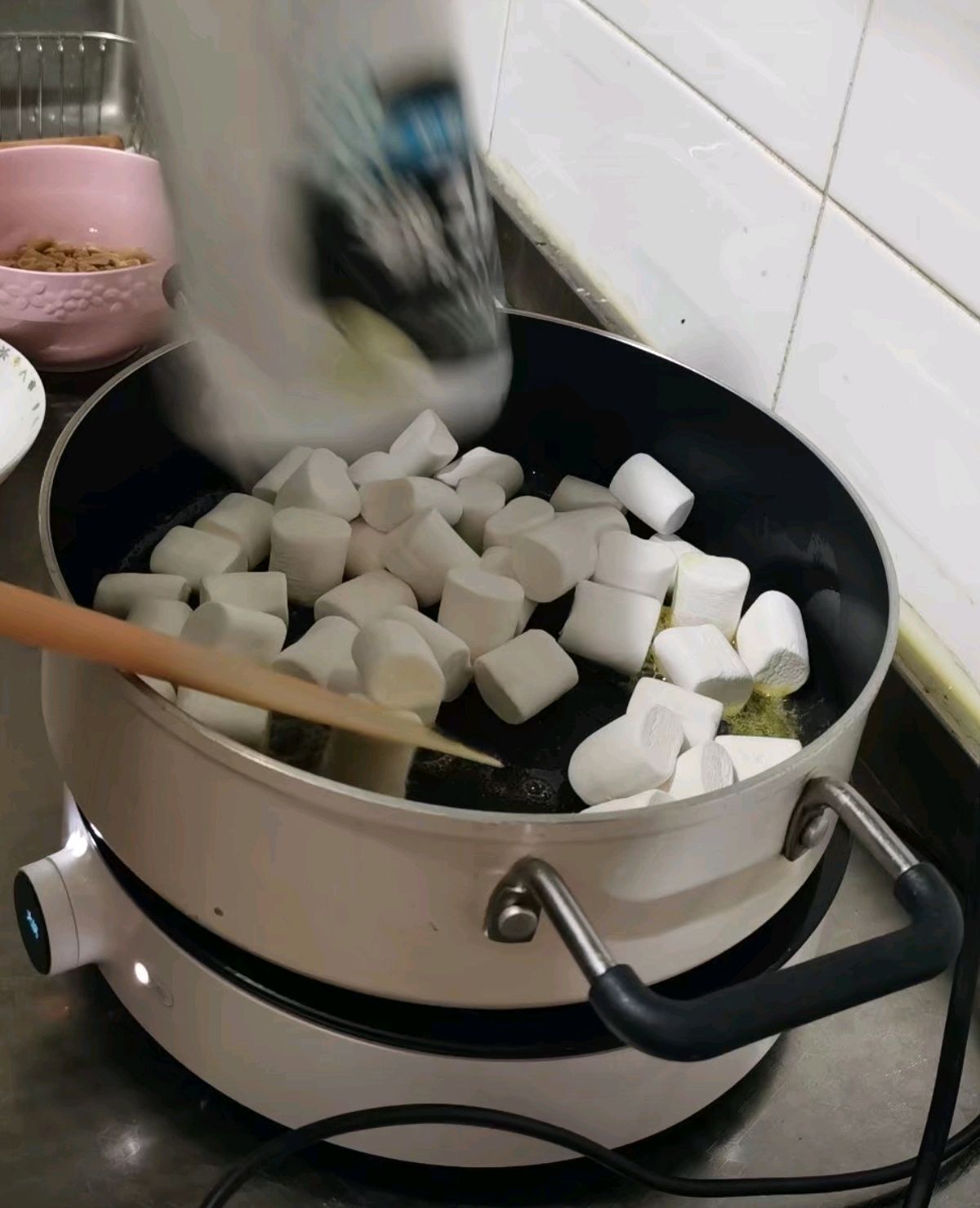 步骤4、待棉花糖块炒融化