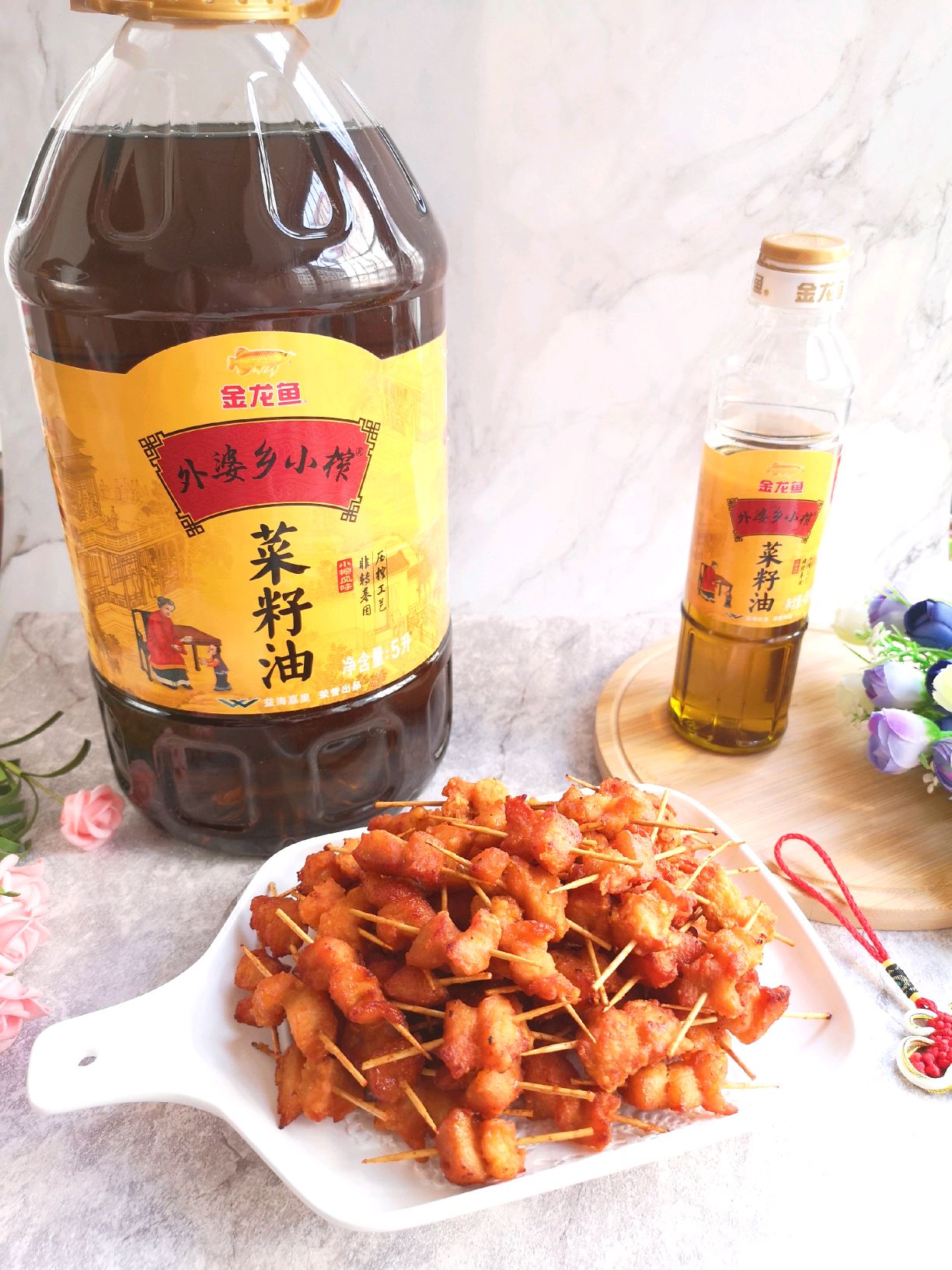 步骤14、金龙鱼外婆乡小榨菜籽油炸的肉肉色泽金黄,味道超级赞!
